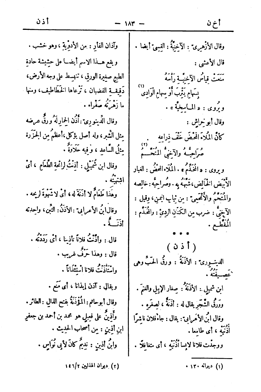 وقال ابنُ الأعرابيّ: الأذَنُ: التِّبن، واحِدته أذَنَةٌ.