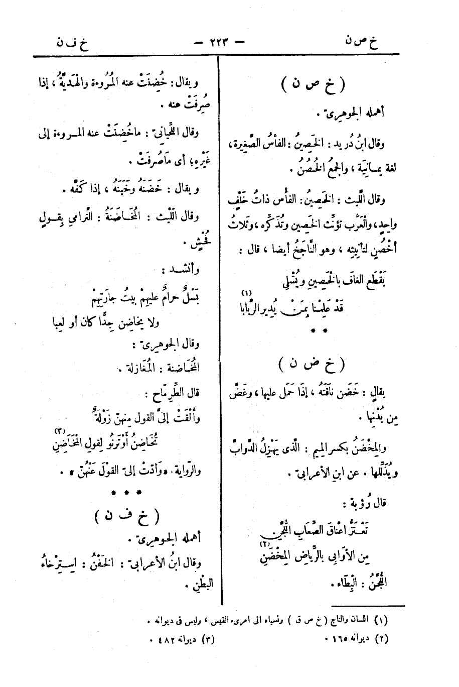 وقال اللِّحيانِيّ: ما خُضِنَتْ عنه المروءة إلى غَيْرهِ؛ أي مَا صُرفَتْ.