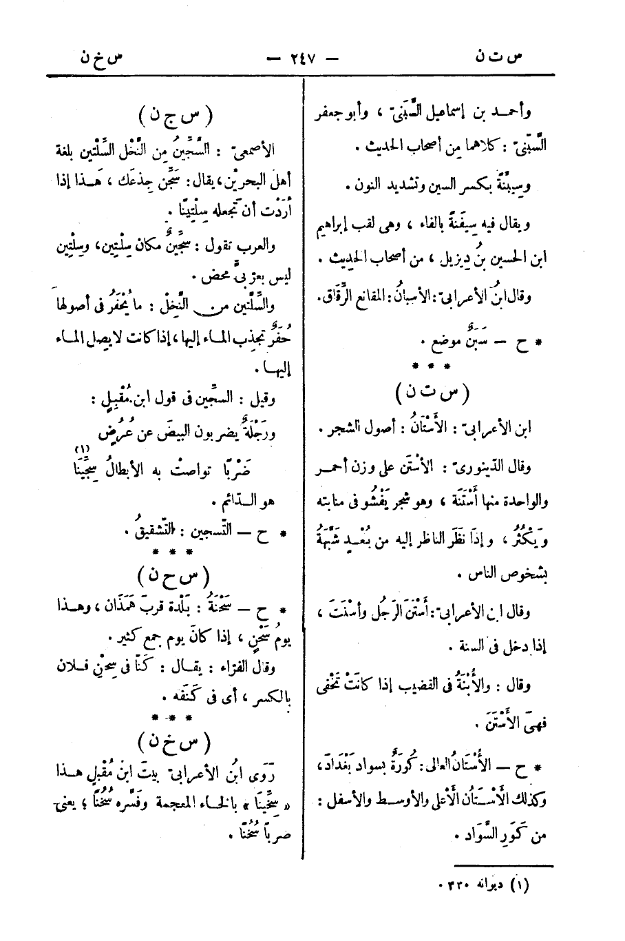 *ح - الأُسْتَانُ العالي: كُورَةٌ بسواد بَغْدَادَ، وكذلك الأَسْتَانُ الأَعْلى والأوسط والأسفل: من كَوَرِ السَّوَاد.
