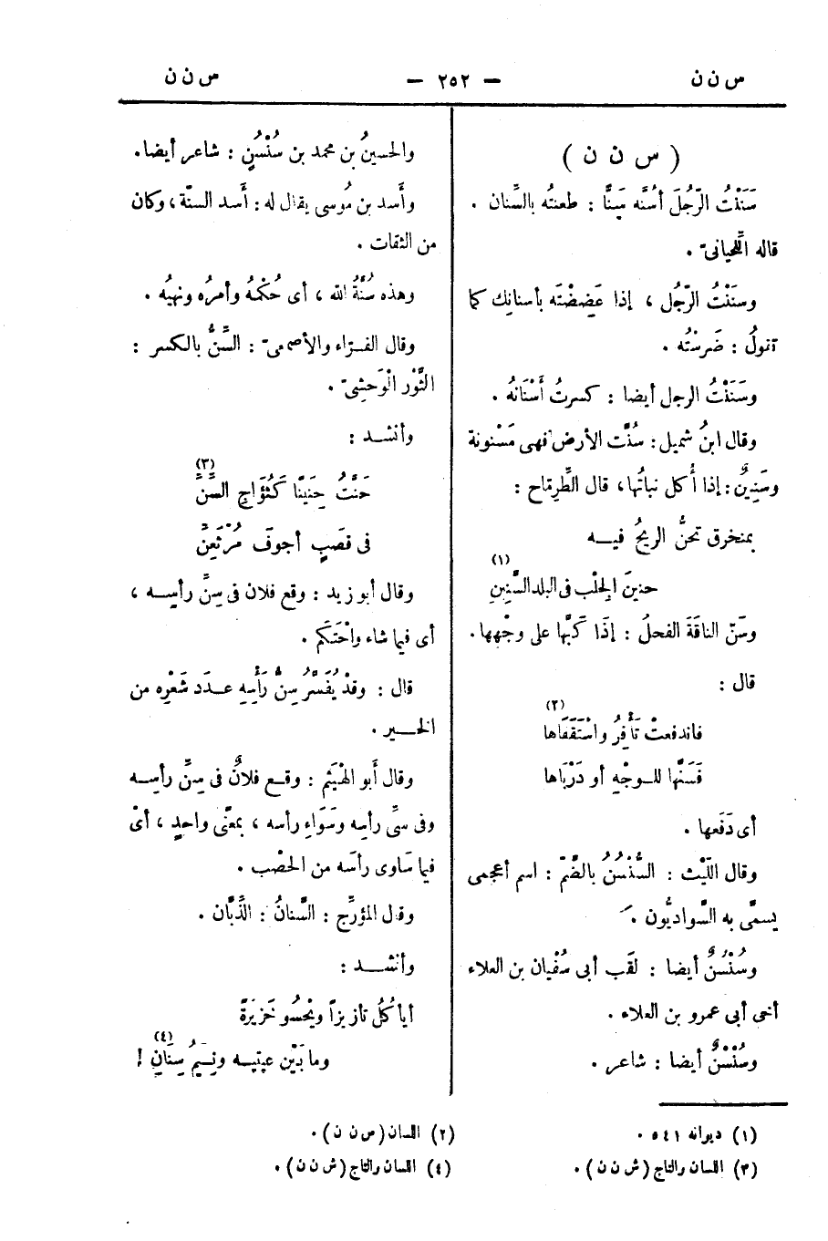 سَنَنْتُ الرّجُلَ أسُنَّه سَنًّا: طعنتُه بالسِّنان.