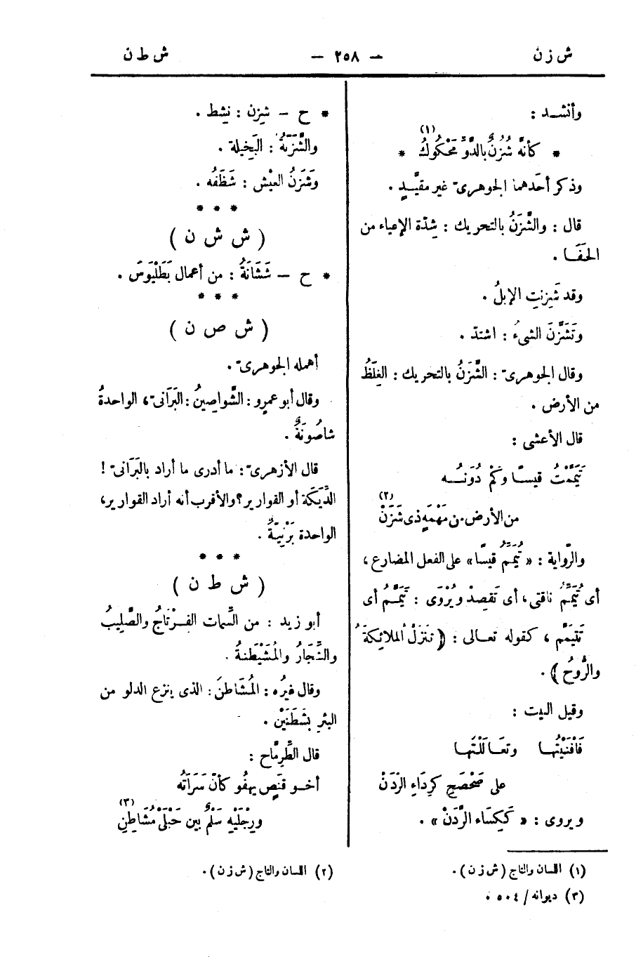 وقال غيرُه: المُشَاطَن: الذي ينزل الدلو من البئر بِشَطَنَيْن.