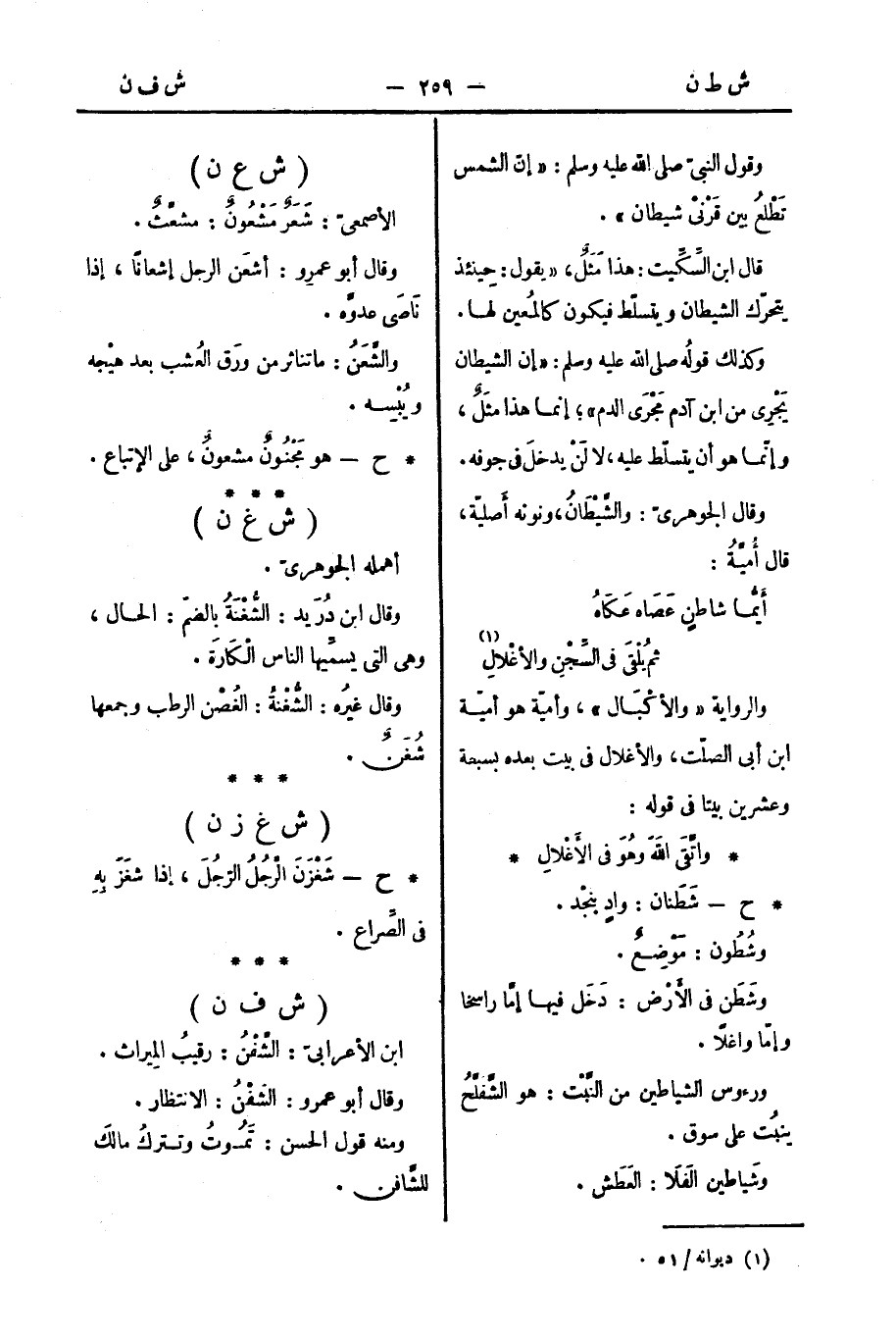 وقال الجوهريّ: والشَّيْطَانُ، ونونه أَصليّة، قال أُميَّةُ: