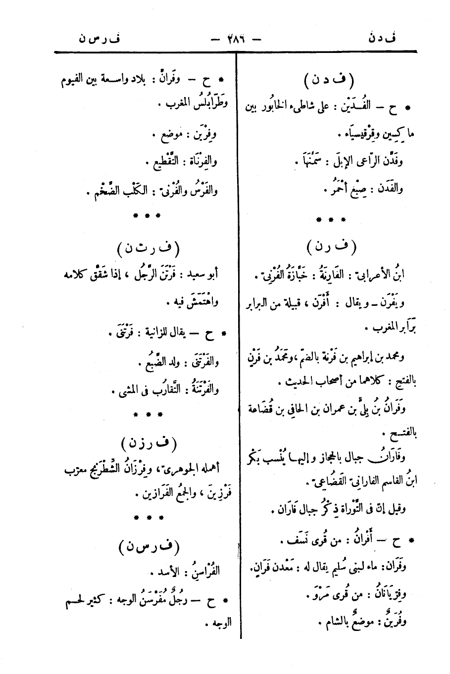 *ح - وفَرانَّ: بلاد واسعة بين الفيوم وطَرَابُلسُ المغرب.