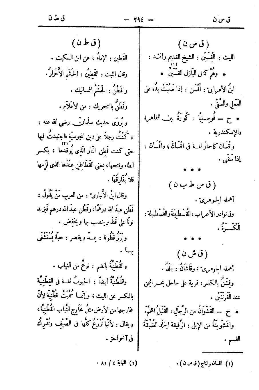 "كُنْتُ رجلًا على دين المجوسيّة فاجتهدتُ فيها حى كنت قَطِن النّار الّذي يُوقدها، بكسر الطاء وفتحها، بمعنى القَطَاطِنِ عِنْدَها الذي لَزِمها فلا يُفَارِقُهَا.