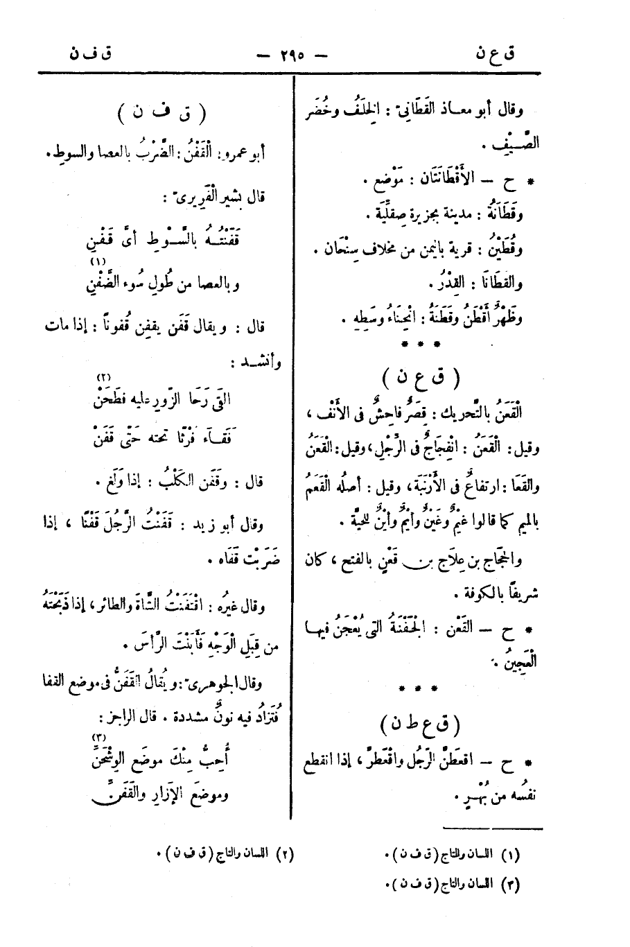 وقال الجوهريّ: ويُقالُ القَفَنُّ في موضع القفا فتُزَادُ فيه نونٌ مشددة. قال الراجز: