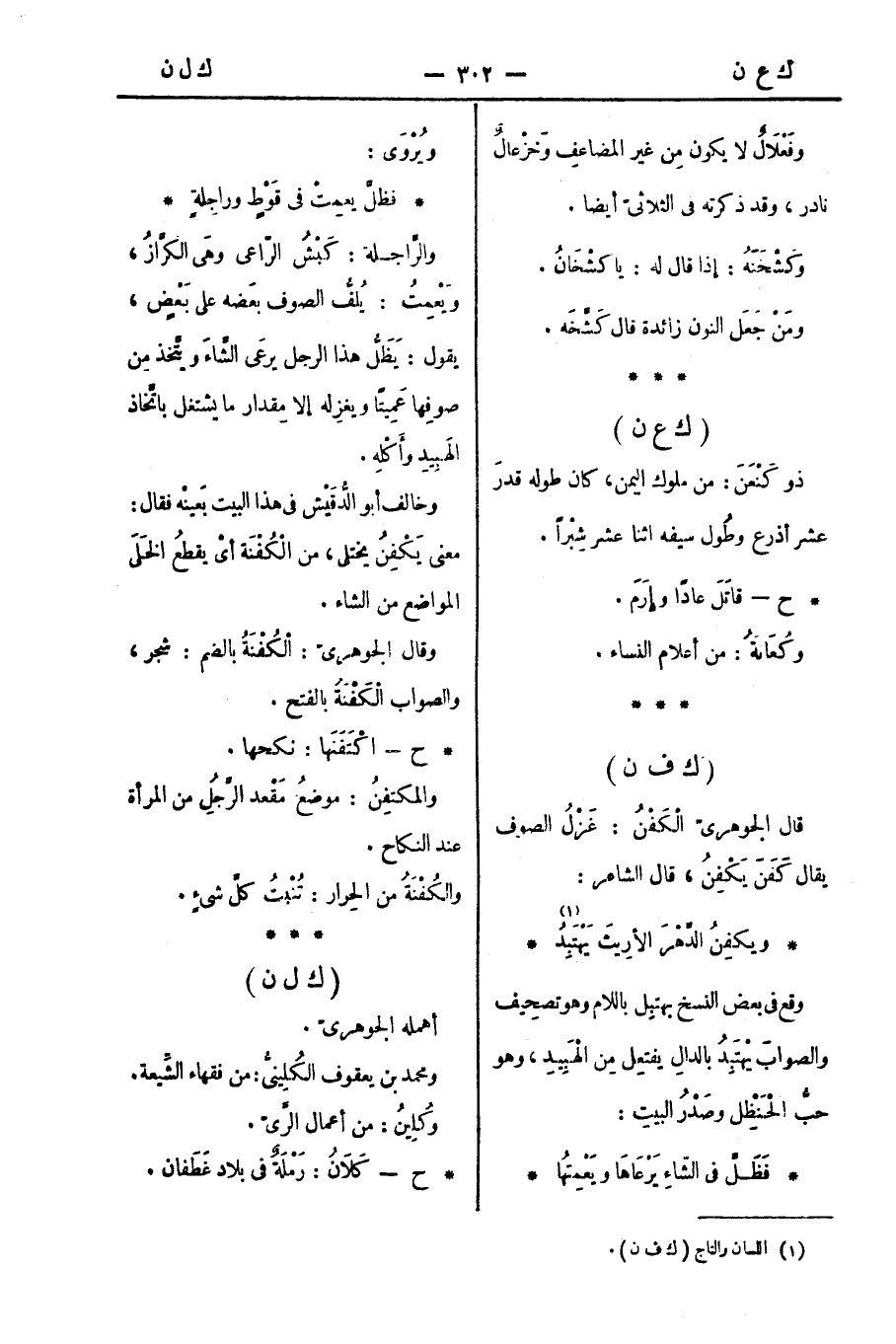 وقال الجوهريّ: الْكُفْنَةُ بالضم: شجر والصواب الكَفْنَةُ بالفتح.