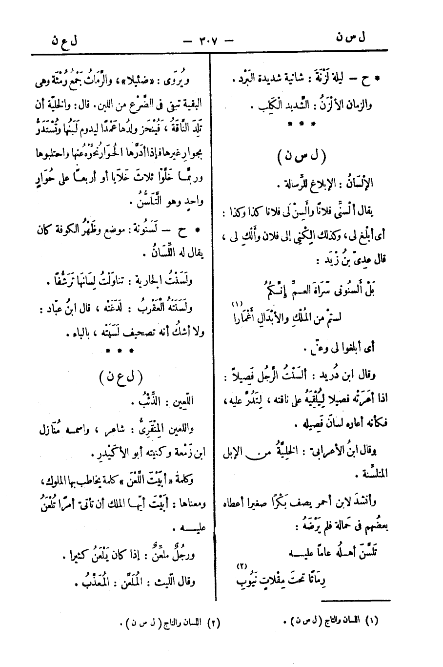 *ح - لَسنُونة: موضع وظَهْرُ الكوفة كان يقال له الِّلسَانُ.
