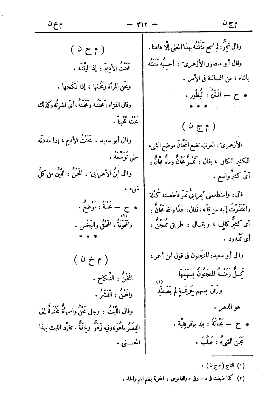 الأزهريّ: العرب تضع المَجَّانَ موضع الشيء الكثير الكافي، يقال: تَمْرٌ مَجَّانٌ وماءٌ مَجَّانٌ: أيْ كثيرٌ واسع.