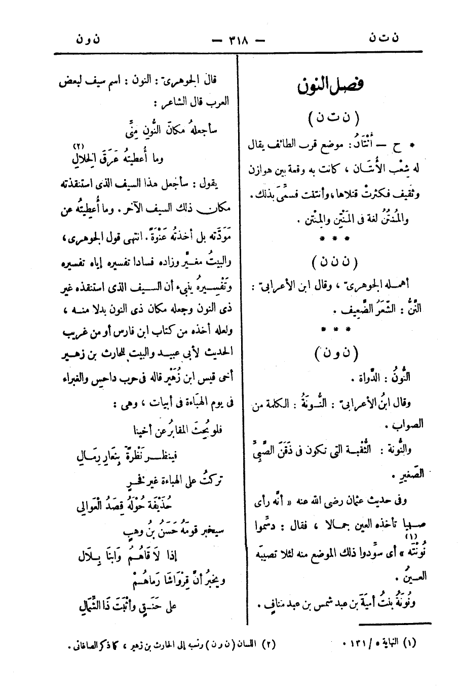 يقول: سأجعل هذا السيف الذي استنقذته مكان ذلك السيف الآخر. وما أُعطِيتُه عن مَوَدَّته بل أخذتُه عِنْوَةً. انتهى قول الجوهري، والبيتُ مغيَّر وزاده فسادا تفسيره إياه تفسيره وتَفْسِيرهُ ينبئ أن السيف الذي استنقذه غير ذي النون وجعله مكان ذي النون بدلا منه، ولعله أخذه من كتاب ابن فارس أو من غريب الحديث لأبي عبيد والبيت للحارث بن زهير أخي قيس ابن زُهَيْر قاله في حرب داحِس والغبراء في يوم الهبَاءة في أبيات، وهي: