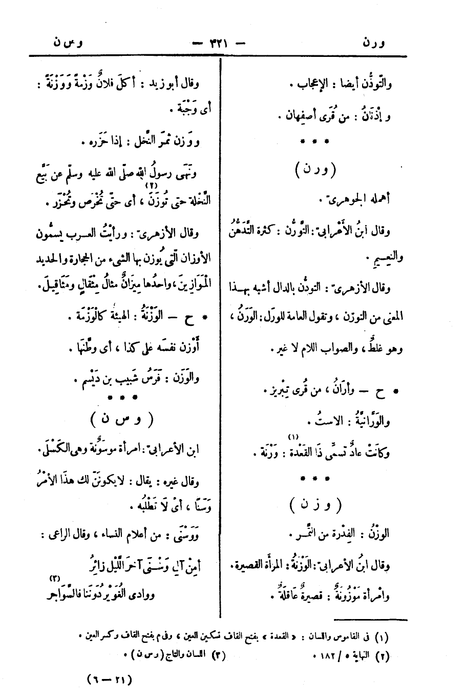 وقال أبو زيد: أكلَ فلانٌ وَزْمةً وَوَزْنَةً: أي وَجْبَة.
