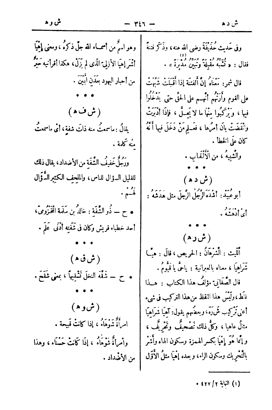 قال الصَّغَانِيّ مؤلفُ هذا الكتاب: هذا غلَط، ولَيْسَ هذا اللفظ من هذا التركيب في شيء أعني تَرْكيب شَ رَ هَ، وبعضُهم يقول: آهِيَا شَرَاهِيَا مثالُ عاهيا، وكلُّ ذلك تَصْحيفٌ وتَحْرِيفٌ، وإنَّما هُوَ إهْيَا بكسر الهمزة وسكون الهاء وأَشرْ بالتَّحرِيك وسكون الراء، وبعده إهْيَا مثلُ الأَوَّل وهو اسمٌ من أسماء الله جلَّ ذكرُه، ومعنى إِهْيَا أشْرَ إهيَا الأزلِيّ الّذي لم يَزَلْ، هكذا اقرأنيه حَبْرٌ من أحبار اليهود بعَدَنِ أَبْيَنَ.