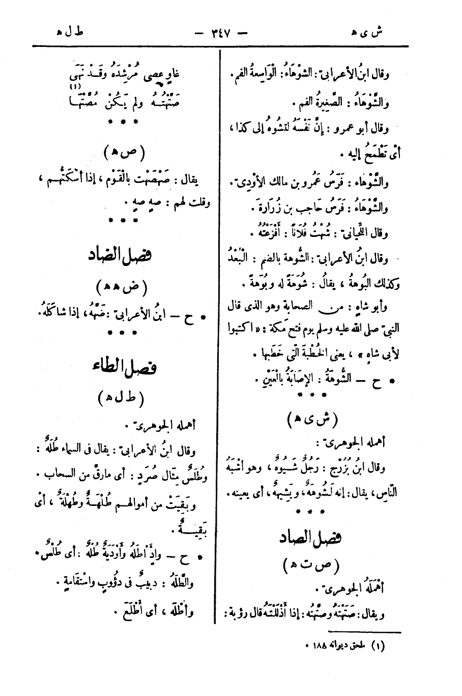 *ح - وادٍ أَطْلَهُ وأَوْدَيَةٌ طُلْهٌ: أي طُلْسٌ.