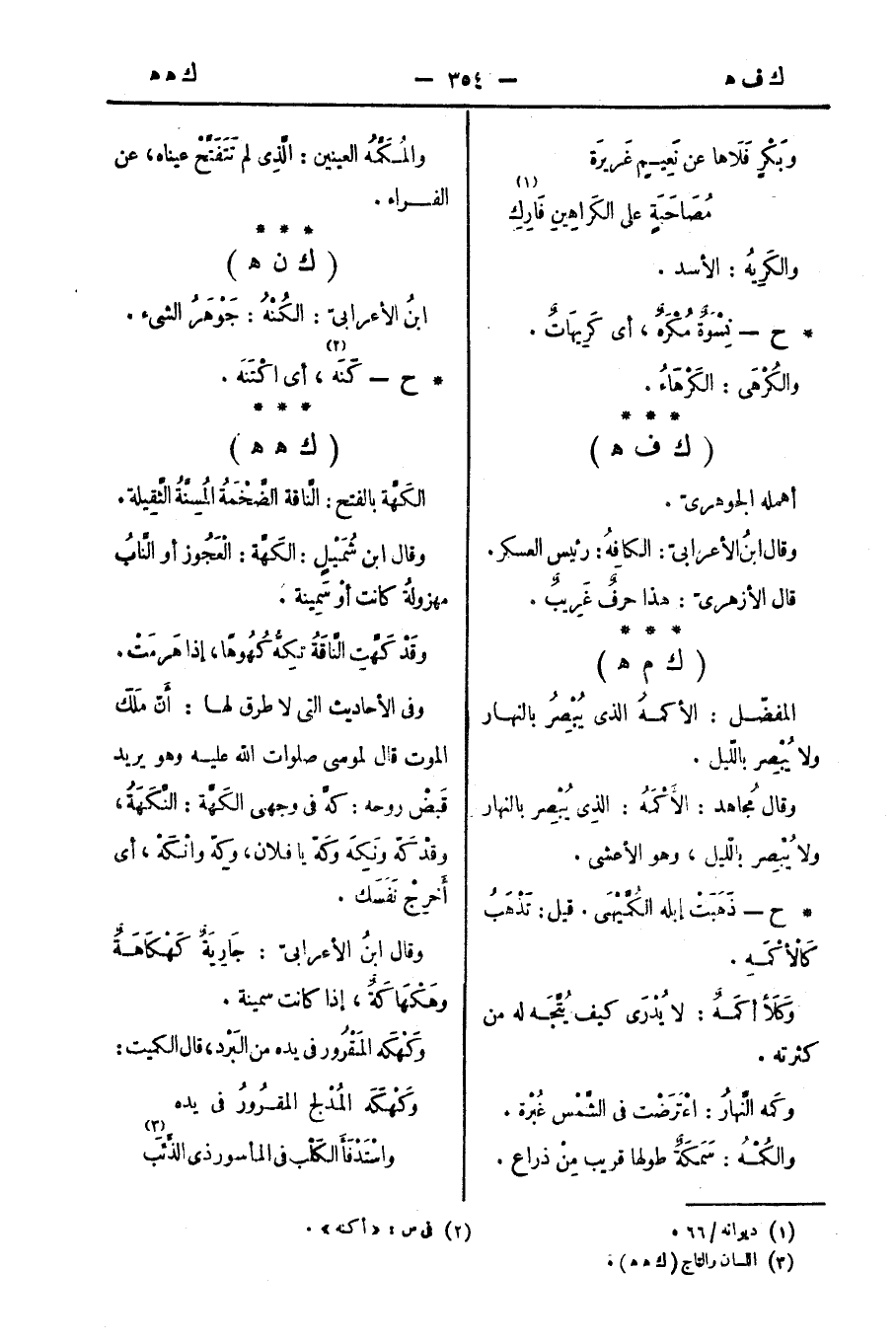 المفضّل: الأكمهُ الذي يُبْصِرُ بالنهار ولا يُبْصِر بالّليل.