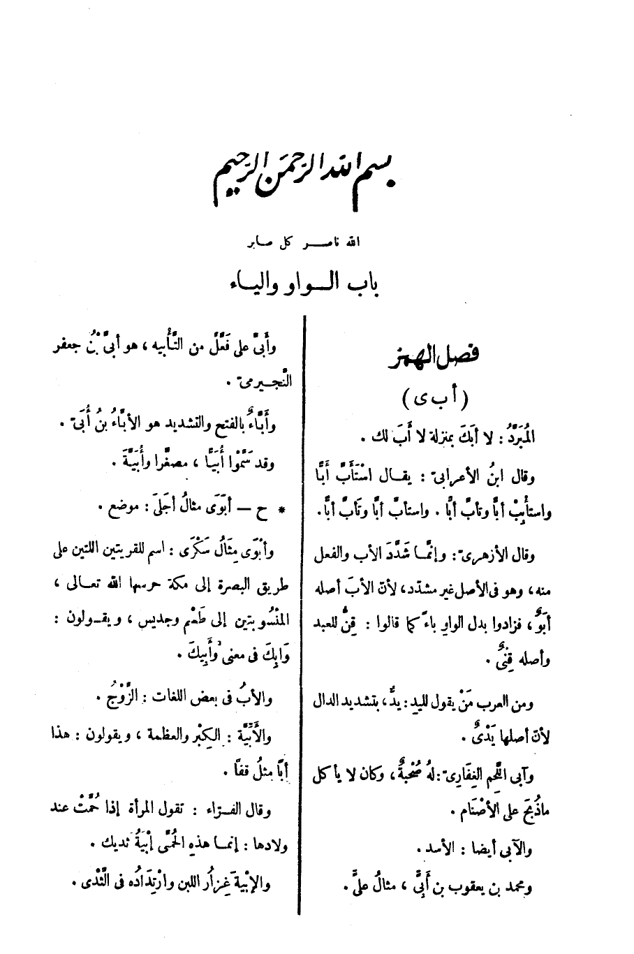 وقال الأزهريّ: وإنَّما شَدَّدَ الأب والفعل ومنه، وهو في الأصل غير مشدّد، لأنّ الأبَ أصله أبَوٌ، فزادوا بدل الواوِ باءً كما قالوا: قِنٌّ للعبد وأصله قِنْيٌ.