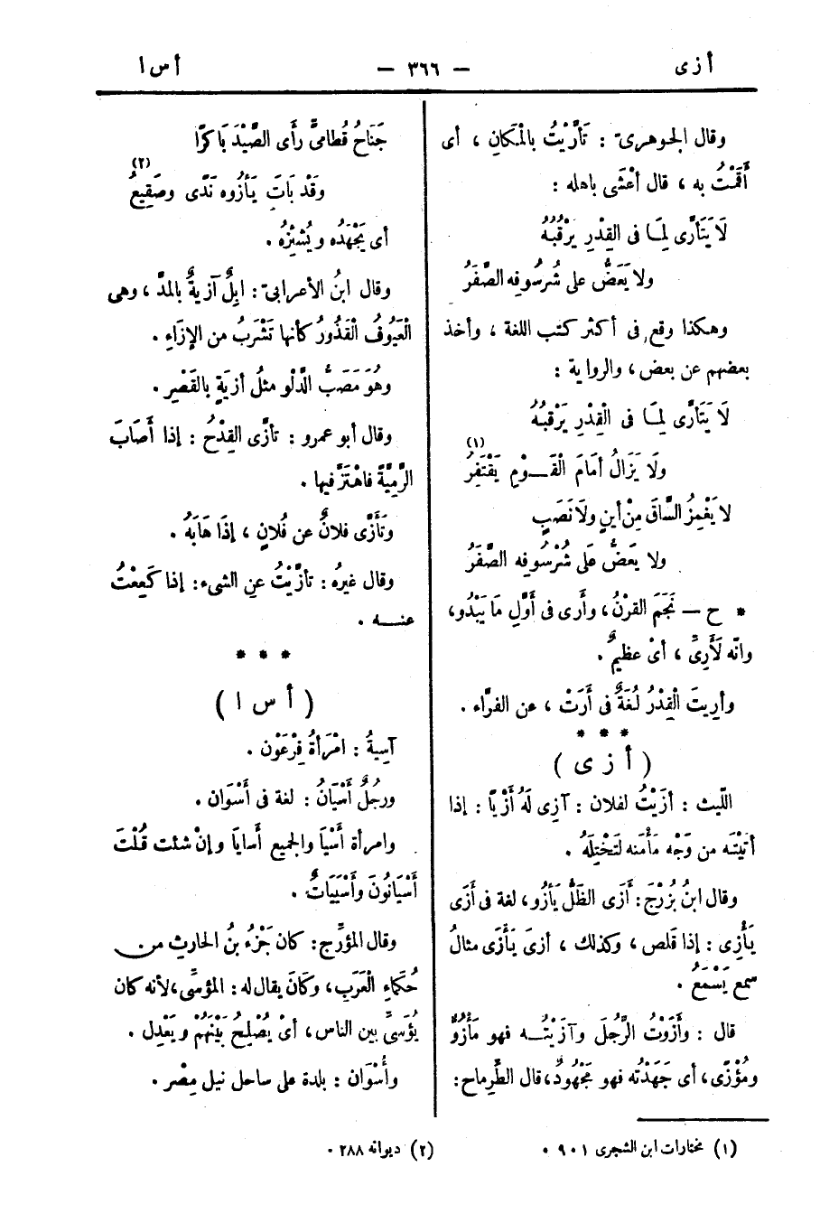 وقال ابنُ بُزرْجَ: أَزَى الظَلُّ يَأزُو، لغة في أَزَى يَأْزِى: إذا قَلص، وكذلك، أزيَ يَأَزَى مثالُ سمع يَسْمَعُ.