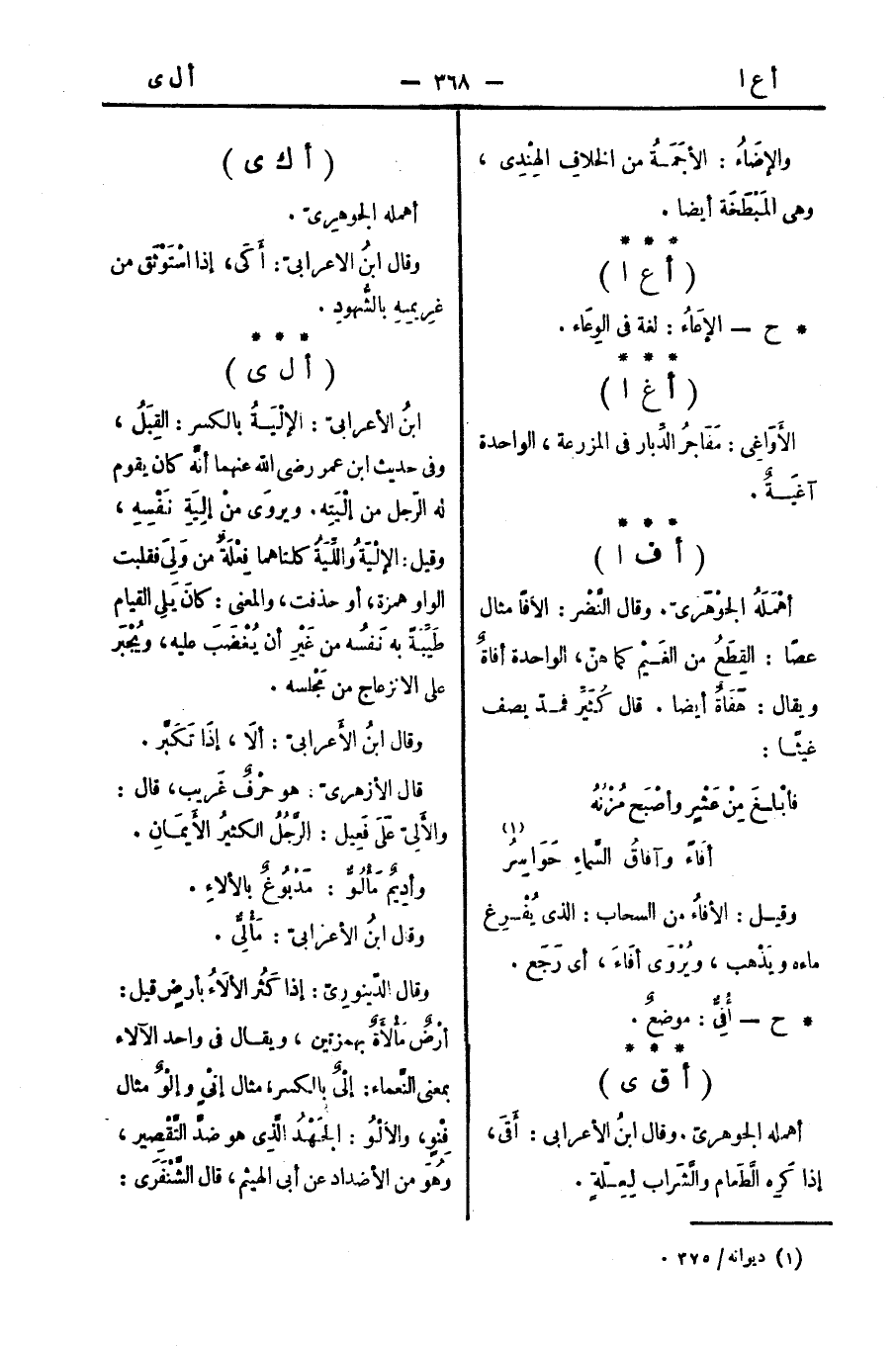 أهْمَلَهُ الجوْهَريّ. وقال النَّضْر: الأفًا مثال عصًا: القِطَعُ من الغَيْم كما هنّ، الواحدة أفاةٌ ويقال: هَفَاةٌ أيضا. قال كُثَيِّر فمدّ يصف غيثًا: