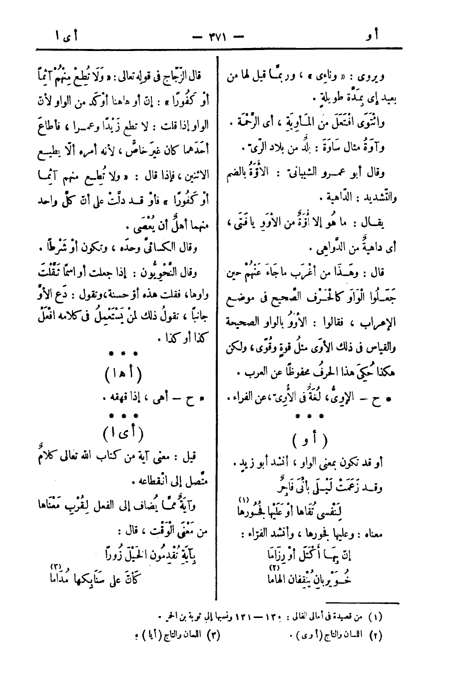 قال: وهَذَا من أغْرب ما جَاءَ عَنْهُمْ حين جَعَلُوا الْوَاوَ كالْحَرْف الصَّحيح في موضع الإعراب، فقالوا: الأووُ بالواو الصحيحة والقياس في ذلك الأوَى مثلُ قوةٍ وقوًى، ولكن هكذا حُكِيَ هذا الحرفُ محفوظًا عن العرب.
