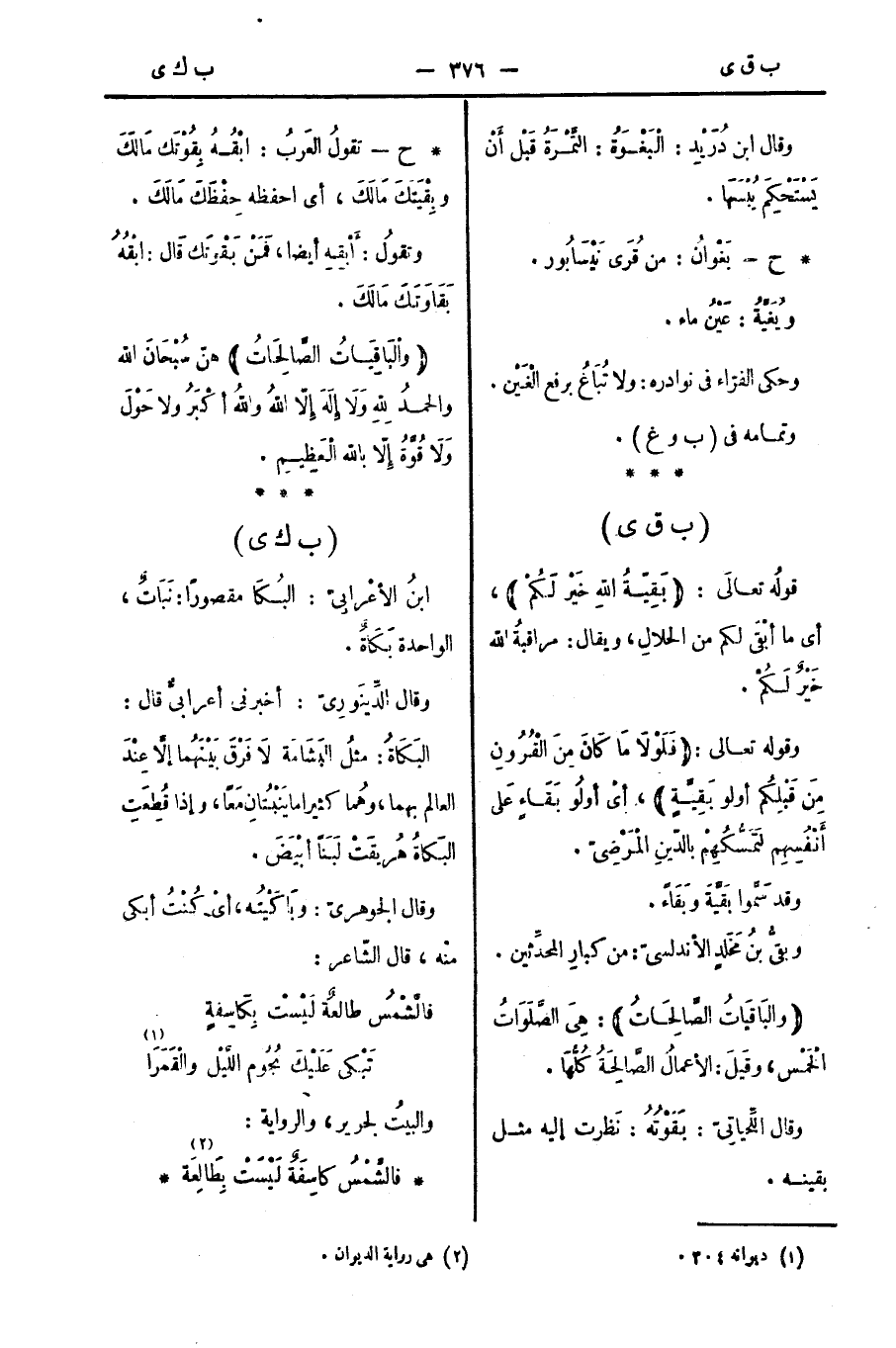 *ح- تقولُ العَربُ: ابْقُهُ بِقُوْتَك مَالَكَ وبِقْيَتَكَ مَالَكَ، وأي احفظه حِفْظَكَ مَالَكَ.