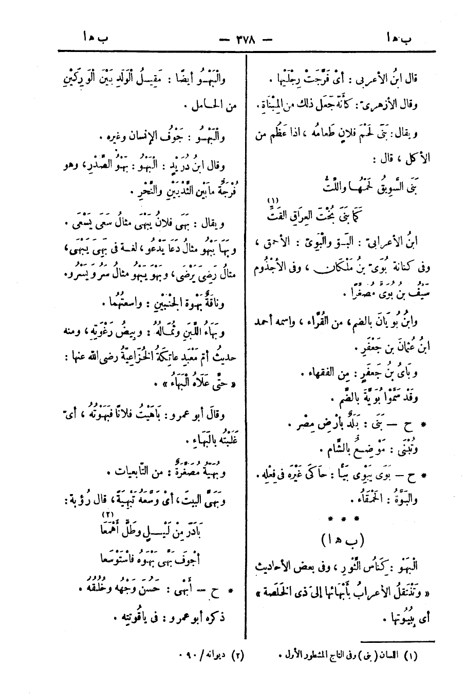 وبَهَا يَبْهُو مثلُ دَعَا يَدْعُو، لغة في بَهِيَ يَبْهَى، مثالُ رَضِيَ يَرْضَى، وبَهْوَ يَبْهُو مثالُ سَرُوَ يَسْرُو.