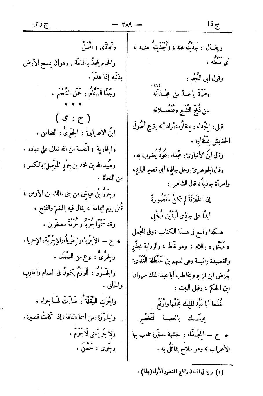 *ح - المِجْذَاء: خشبة مدوَّرة تلعب بها الأعراب، وهو سلاح يقاتَلُ به.