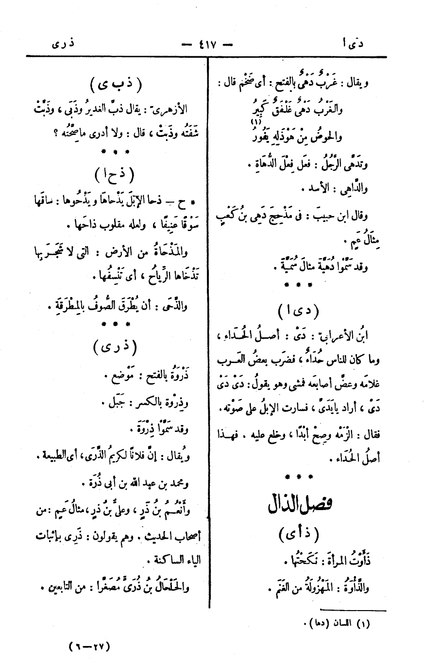 وأنْعُمُ بنُ ذَرٍ، وعليٌّ بنُ ذرٍ، مثالُ عَمٍ: من أصحاب الحديث. وهم يقولون: ذَرِي بإثبات الياء الساكنة.