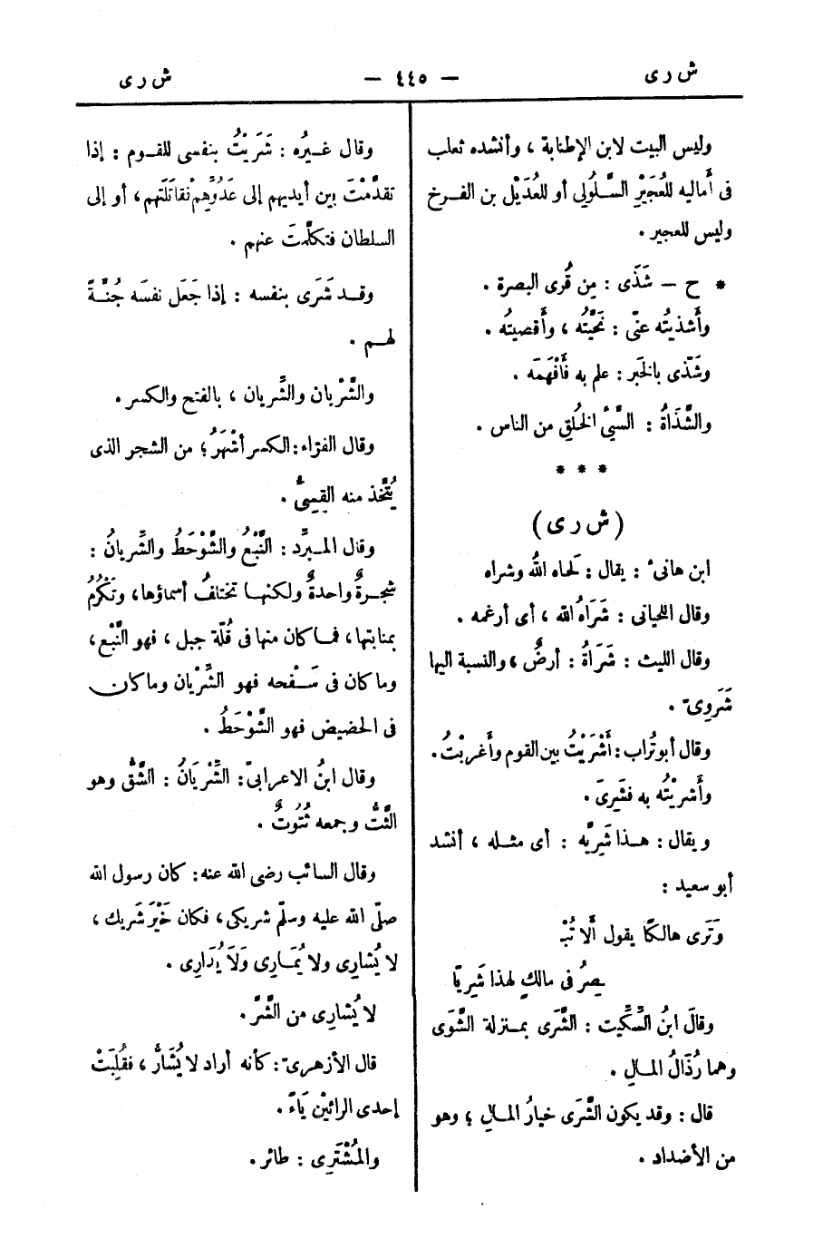 وقالَ ابنُ السِّكِّيت: الشَّرَي بمنزلة الشَّوَى وهما رُذَالُ المالِ.