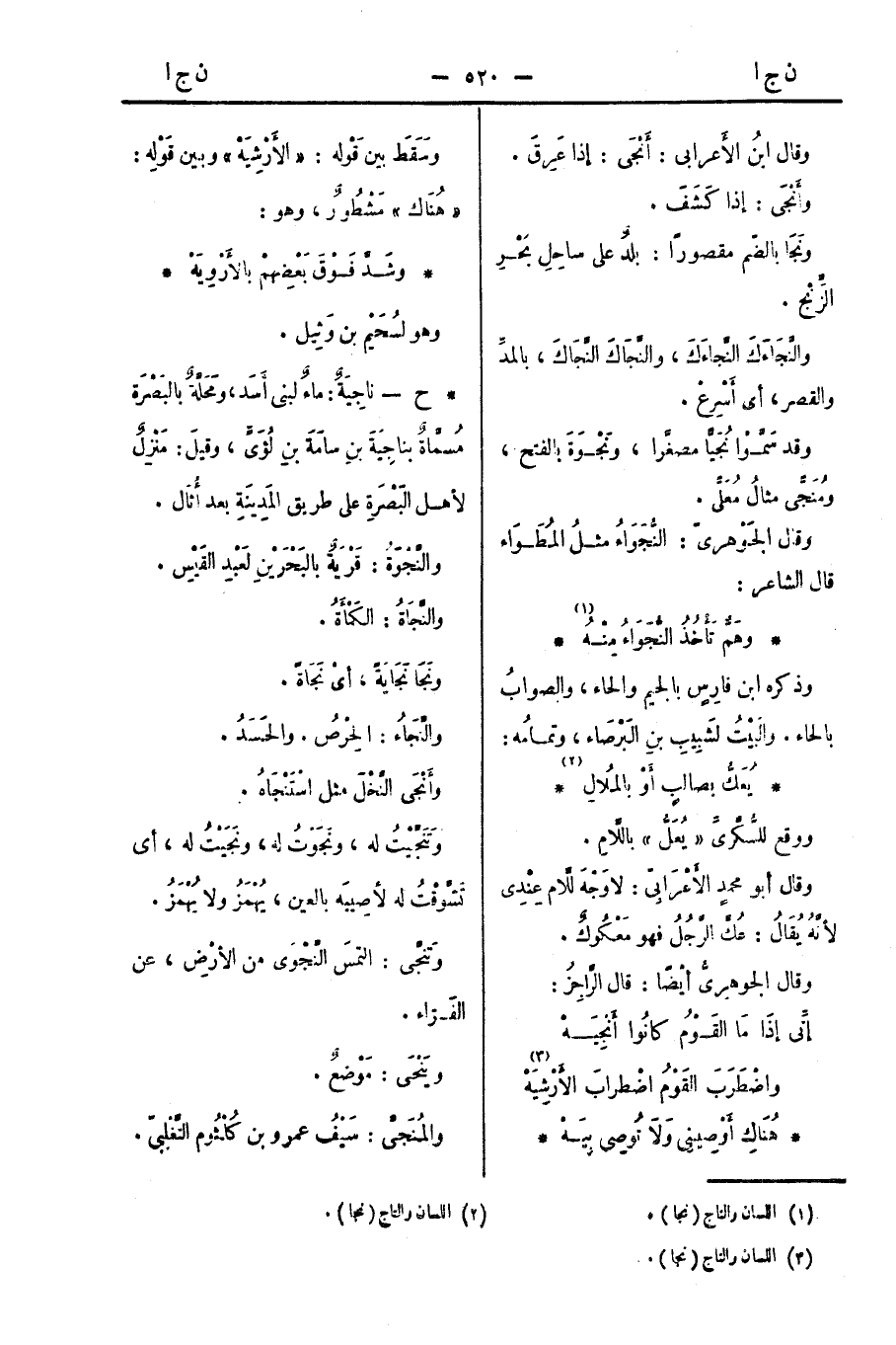 *ح - ناجِيَةٌ: ماءٌ لنبي أَسَد، ومَحَلَّةٌ بالبَصْرَة مُسَمَّاةٌ بناجِيَةَ بنِ سَامَةَ بنِ لُؤَيٍّ، وقيلَ: مَنْزِلٌ لأهل البَصْرَةِ على طريق المَدِينَةِ بعد أُثَال.