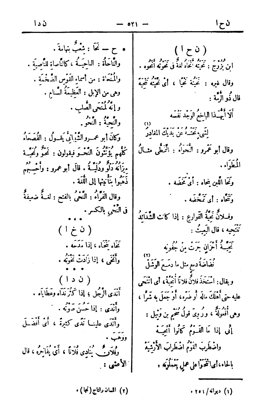 وكانَ أبو عمرو الشَّيْبَانِيُّ يَقولُ: الفُصَحَاءُ كُلُّهم يُؤَنِّثُونَ النَّحْوَ فيقولون: نَحْوٌ ونُحْيَّة مِيزَانُهُ دَلْوٌ ودُلَيَّةُ. قالَ أبو عمرو وأَحْسِبُهُم ذَهَبُوا بتَأْنيثها إلى الُّلغَة.