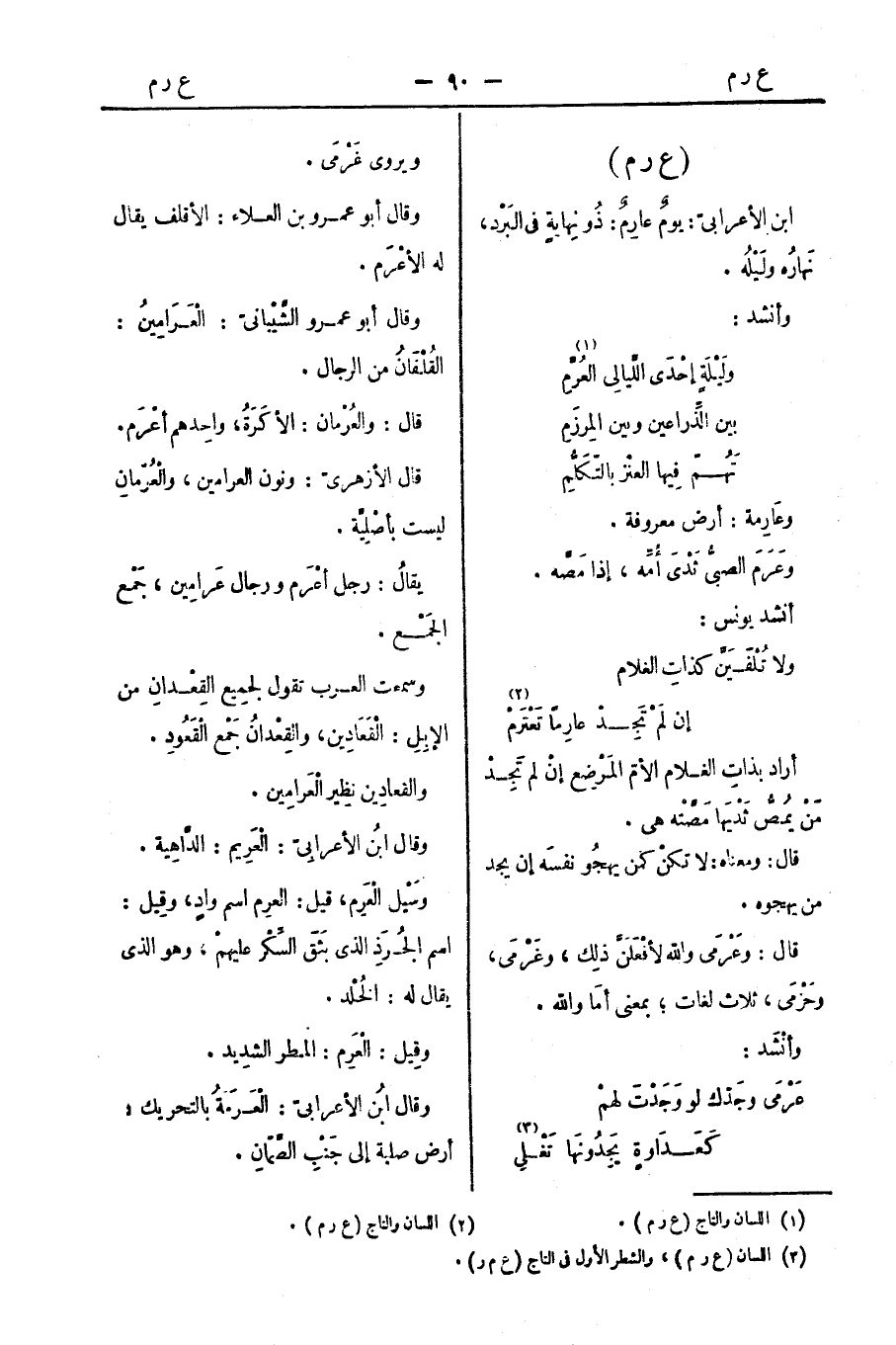 قال الأزهريّ: ونون العرامين، والْعُرْمانِ ليست بأصْليَّة.
