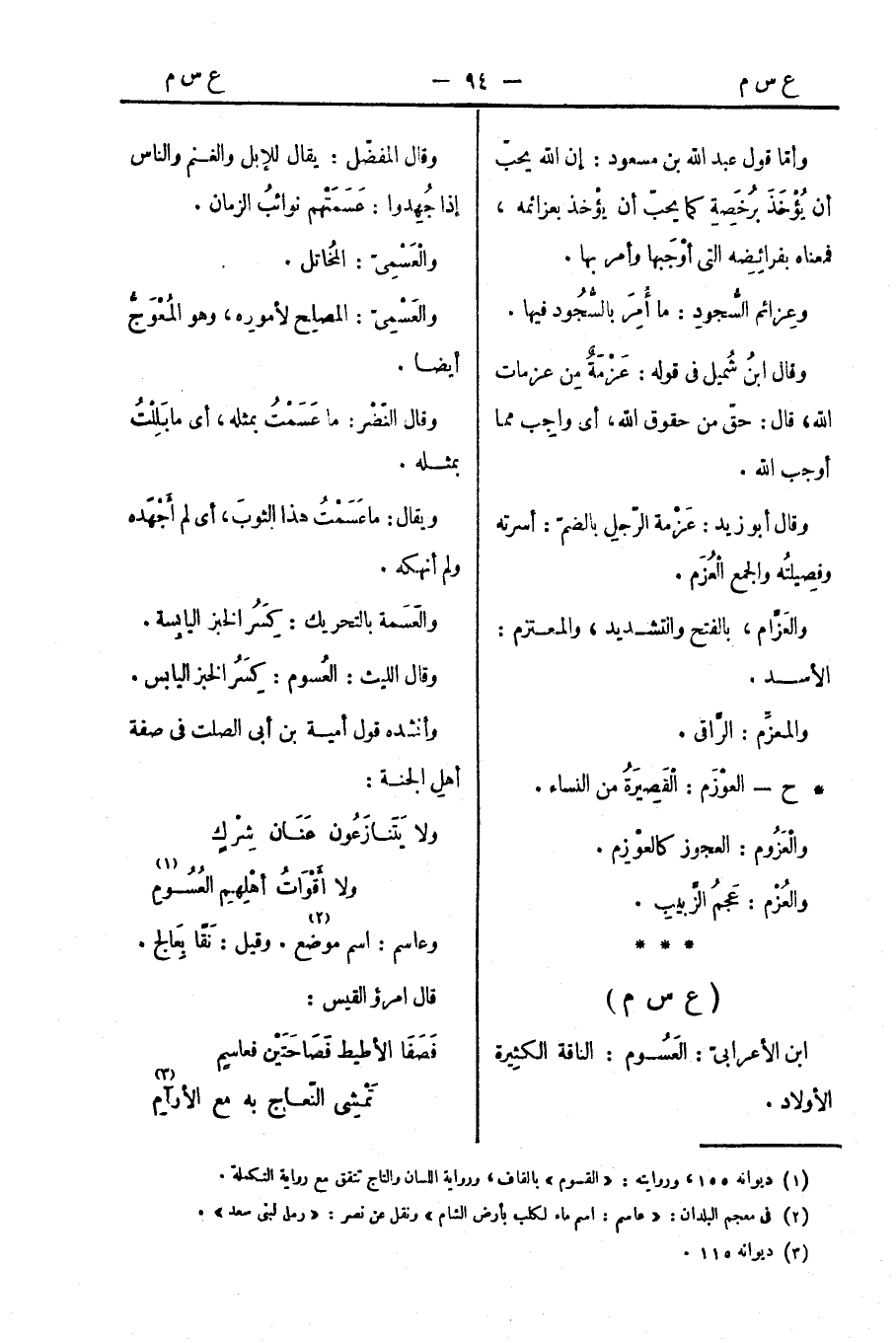 ابن الأعرابيّ: العَسُوم: الناقة الكثِيرة الأولاد.
