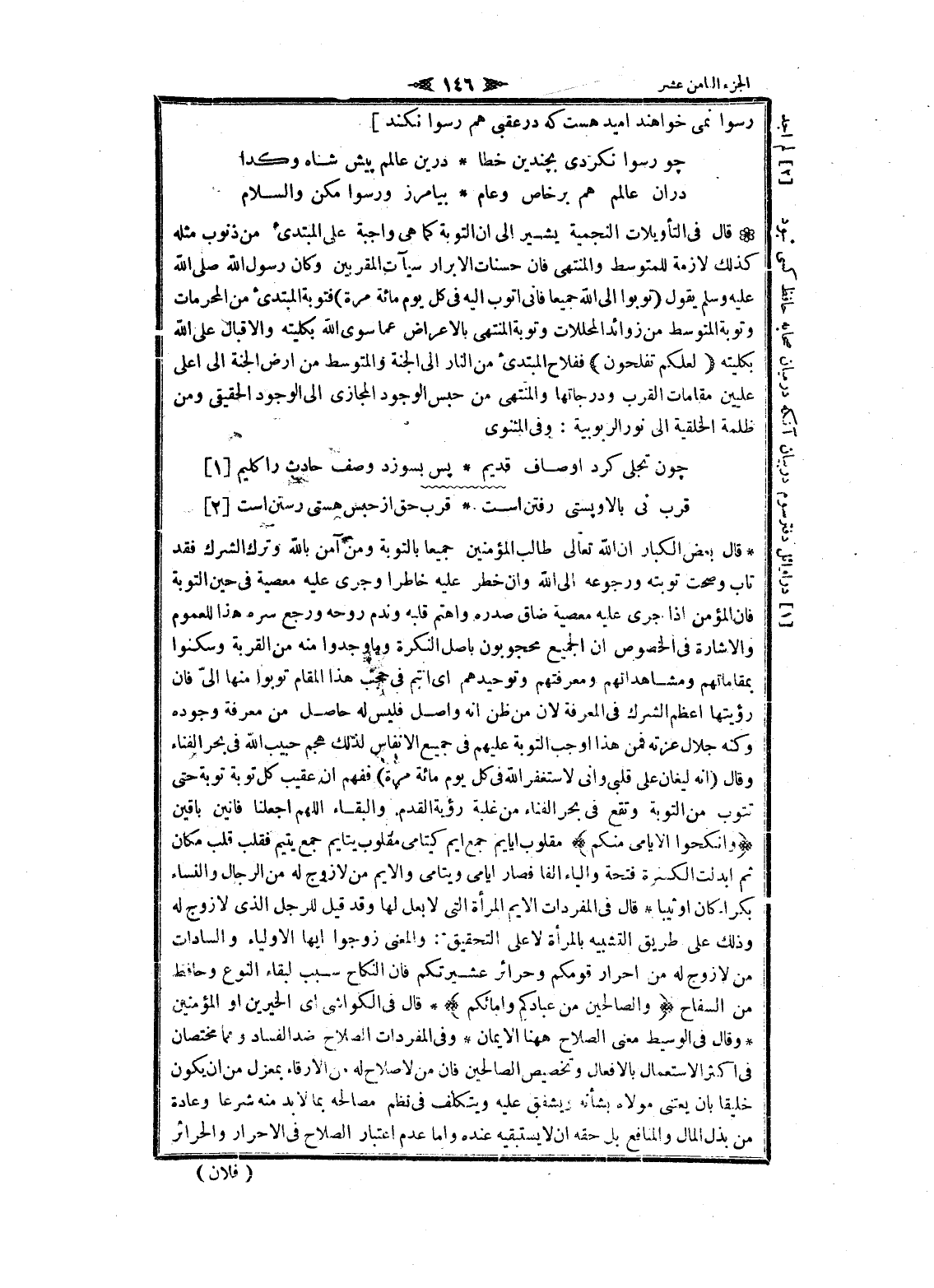 قال فى التأويلات النجمية يشير الى ان التوبة كما هى واجبة على المبتدئ من ذنوب مثله كذلك لازمة للمتوسط والمنتهى فان حسنات الأبرار سيآت المقربين وكان رسول الله صلى الله عليه وسلم يقول (توبوا الى الله جميعا فانى أتوب اليه فى كل يوم مائة مرة) فتوبة المبتدئ من المحرمات وتوبة المتوسط من زوائد المحللات وتوبة المنتهى بالاعراض عما سوى الله بكليته والإقبال على الله بكليته (لَعَلَّكُمْ تُفْلِحُونَ) ففلاح المبتدئ من النار الى الجنة والمتوسط من ارض الجنة الى أعلى عليين مقامات القرب ودرجاتها والمنتهى من حبس الوجود المجازى الى الوجود الحقيقي ومن ظلمة الخلقية الى نور الربوبية: وفى المثنوى