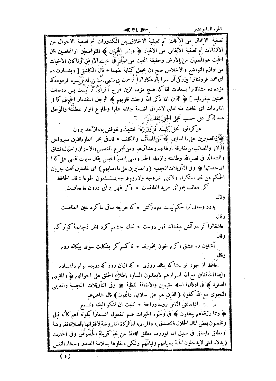 تصفية الأعمال من الآفات ثم تصفية الأخلاق من الكدورات ثم تصفية الأحوال من الالتفاتات ثم تصفية الأنفاس من الأغيار وَبَشِّرِ الْمُخْبِتِينَ المتواضعين او المخلصين فان الخبت هو المطمئن من الأرض وحقيقة المخبت من صار فى خبت الأرض ولما كان الإخبات من لوازم التواضع والإخلاص صح ان يجعل كناية عنهما قال الكاشفى [وبشارت ده اى محمد فروتنانرا ببزرگى آن سرا يا ترسكاران را برحمت بى منتهى. سلمى قدس سره فرموده كه مژده ده مشتاقانرا بسعادت لقا كه هيچ مژده ازين فرح افزاى تر نيست پس در صفت مخبتين ميفرمايد] الَّذِينَ إِذا ذُكِرَ اللَّهُ وَجِلَتْ قُلُوبُهُمْ الوجل استشعار الخوف كما فى المفردات اى خافت منه تعالى لاشراق أشعة جلاله عليها وطلوع أنوار عظمته والوجل عند الذكر على حسب تجلى الحق للقلب