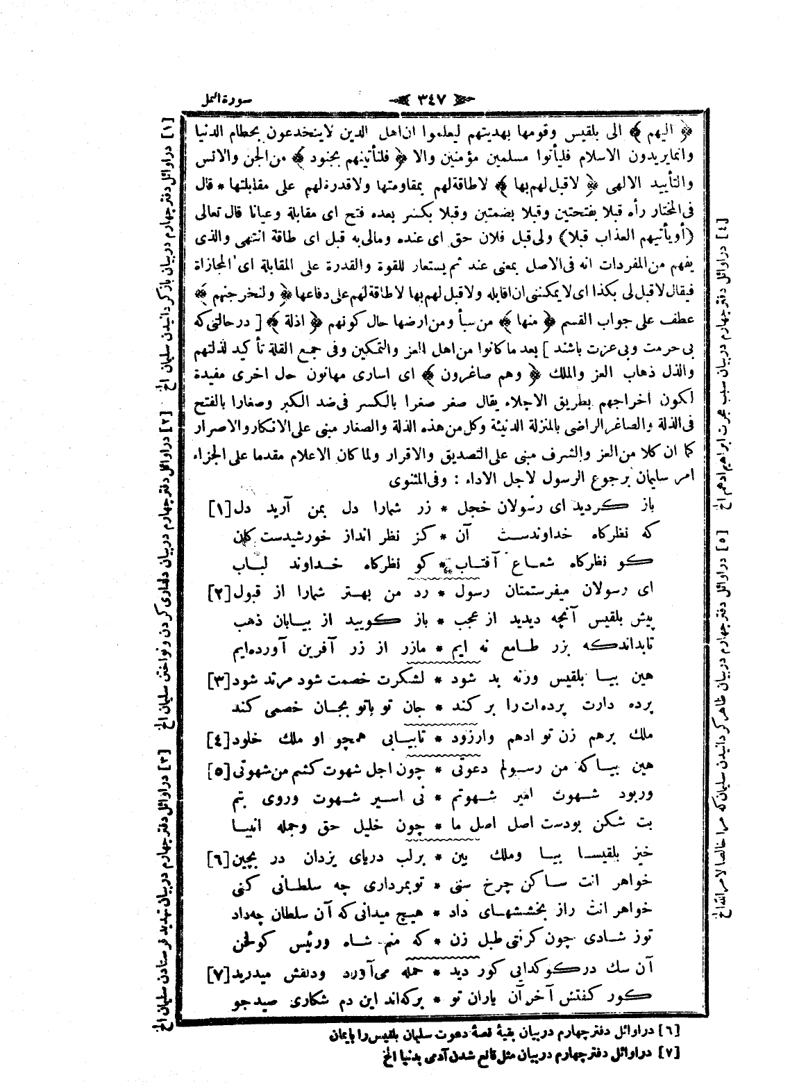 (6) در أوائل دفتر چهارم در بيان بقيه قصه دعوت سليمان بلقيس را بايمان