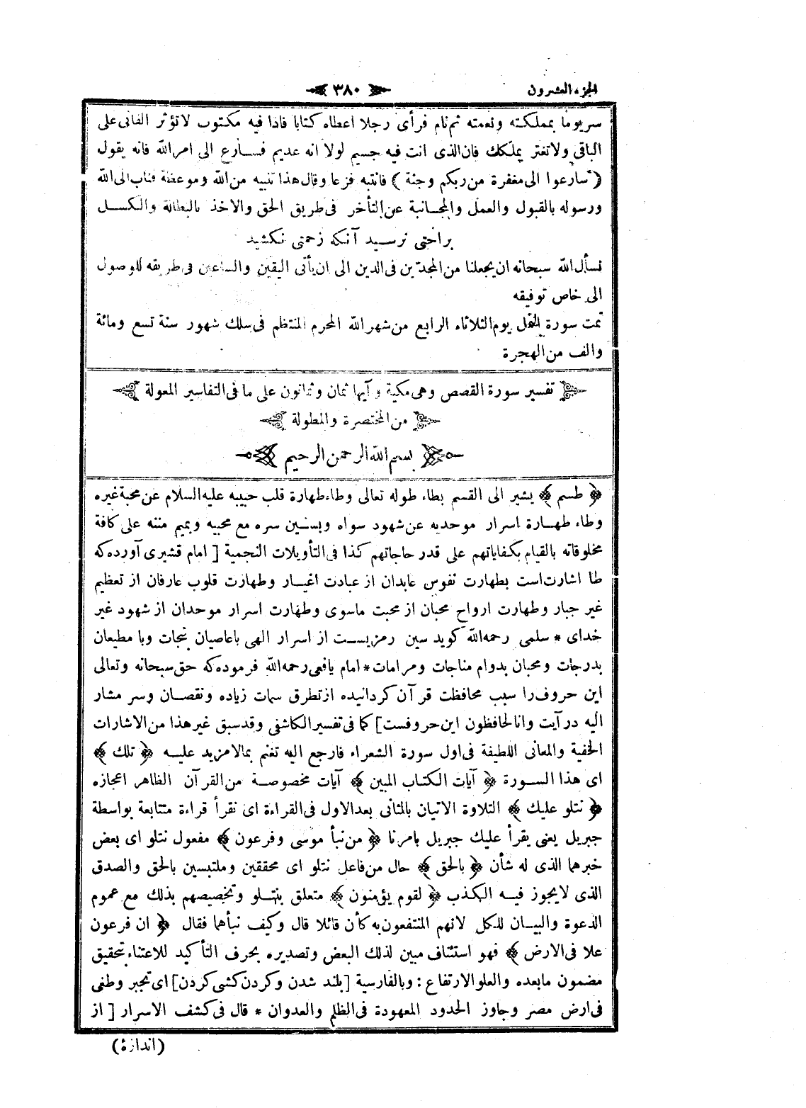 نسأل الله سبحانه ان يجعلنا من المجدّين فى الدين الى ان يأتى اليقين والساعين فى طريقه للوصول الى خاص توفيقه تمت سورة النمل يوم الثلاثاء الرابع من شهر الله المحرم المنتظم فى سلك شهور سنة تسع ومائة والف من الهجرة
