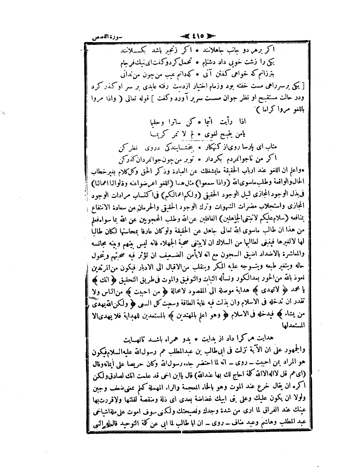 [يكى بر سر راهى مست خفته بود وزمام اختيار از دست رفته عابدى بر سر او گذر كرد ودر حالت مستقبح او نظر جوان مست سر بر آورد وگفت] قوله تعالى (وَإِذا مَرُّوا بِاللَّغْوِ مَرُّوا كِراماً)