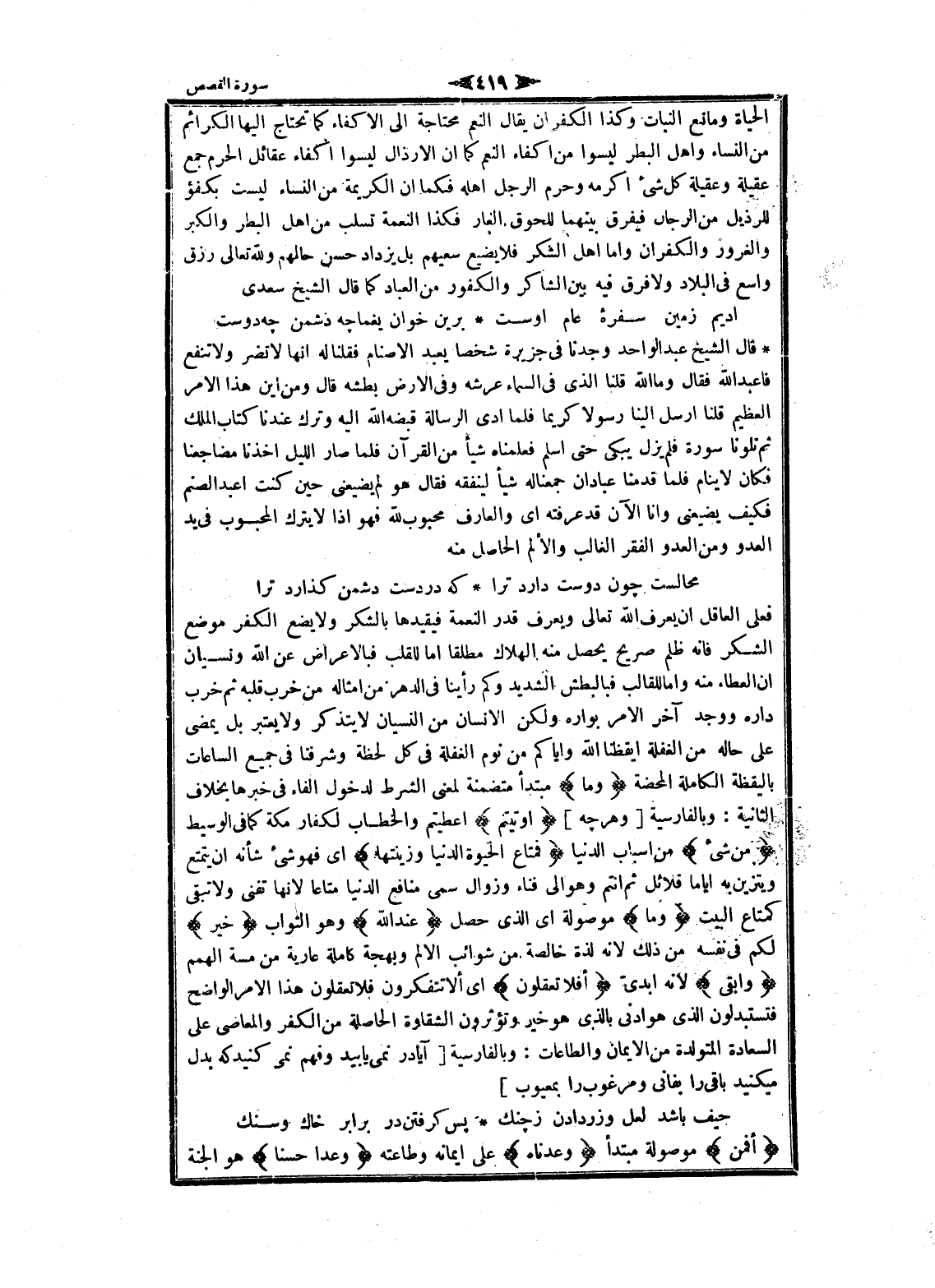 الحياة ومانع النبات وكذا الكفران يقال النعم محتاجة الى الأكفاء كما تحتاج إليها الكرائم من النساء واهل البطر ليسوا من اكفاء النعم كما ان الأرذال ليسوا اكفاء عقائل الحرم جمع عقيلة وعقيلة كل شىء أكرمه وحرم الرجل اهله فكما ان الكريمة من النساء ليست بكفؤ للرذيل من الرجال فيفرق بينهما للحوق العار فكذا النعمة تسلب من اهل البطر والكبر والغرور والكفران واما اهل الشكر فلا يضيع سعيهم بل يزداد حسن حالهم ولله تعالى رزق واسع فى البلاد ولا فرق فيه بين الشاكر والكفور من العباد كما قال الشيخ سعدى
