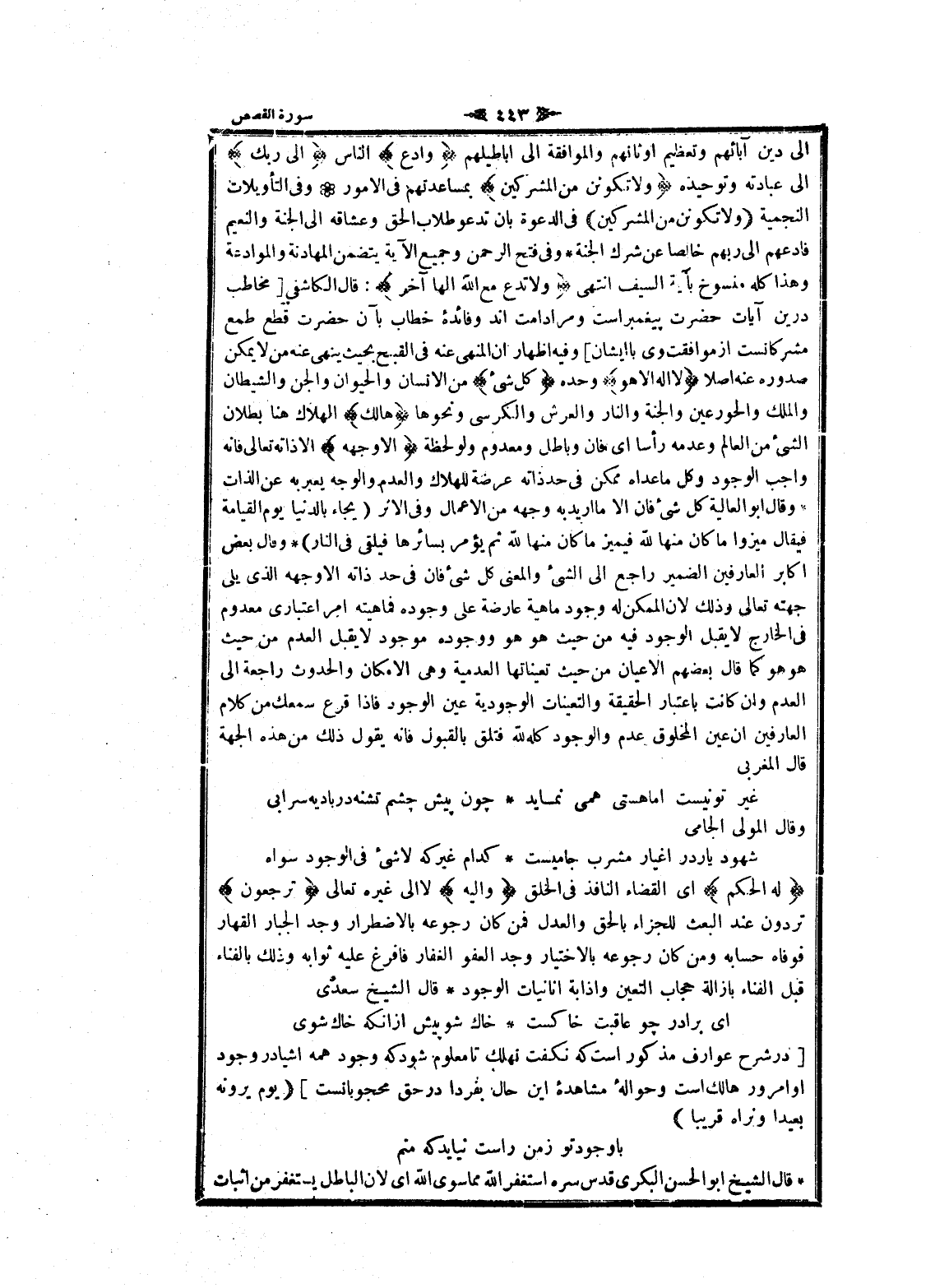 [در شرح عوارف مذكور است كه نكفت نهلك تا معلوم شود كه وجود همه اشيا در وجود او امروز هالك است وحواله مشاهده اين حال بفردا در حق محجوبانست] (يوم يَرَوْنَهُ بَعِيداً وَنَراهُ قَرِيباً)