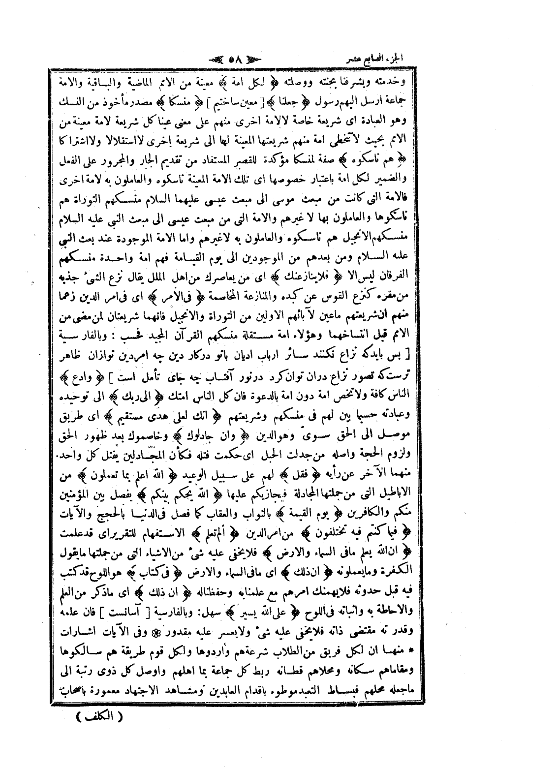 وخدمته ويشرفنا بجنته ووصلته لِكُلِّ أُمَّةٍ معينة من الأمم الماضية والباقية والامة جماعة أرسل إليهم رسول جَعَلْنا [معين ساختيم] مَنْسَكاً مصدر مأخوذ من النسك وهو العبادة اى شريعة خاصة لا لامة اخرى منهم على معنى عينا كل شريعة لامة معينة من الأمم بحيث لا تتخطى امة منهم شريعتها المعينة لها الى شريعة اخرى لا استقلالا ولا اشتراكا هُمْ ناسِكُوهُ صفة لمنسكا مؤكدة للقصر المستفاد من تقديم الجار والمجرور على الفعل والضمير لكل امة باعتبار خصوصها اى تلك الامة المعينة ناسكوه والعاملون به لامة اخرى فالامة التي كانت من مبعث موسى الى مبعث عيسى عليهما السلام منسكهم التوراة هم ناسكوها والعاملون بها لا غيرهم والامة التي من مبعث عيسى الى مبعث النبي عليه السلام منسكهم الإنجيل هم ناسكوه والعاملون به لا غيرهم واما الامة الموجودة عند بعث النبي عليه السلام ومن بعدهم من الموجودين الى يوم القيامة فهم امة واحدة منسكهم الفرقان ليس الا فَلا يُنازِعُنَّكَ اى من يعاصرك من اهل الملل يقال نزع الشيء جذبه من مقره كنزع القوس عن كبده والمنازعة المخاصمة فِي الْأَمْرِ اى فى امر الدين زعما منهم ان شريعتهم ما عين لآبائهم الأولين من التوراة والإنجيل فانهما شريعتان لمن مضى من الأمم قبل انتساخهما وهؤلاء امة مستقلة منسكهم القرآن المجيد فحسب: وبالفارسية [بس بايد كه نزاع نكنند سائر ارباب أديان با تو در كار دين چهـ امر دين توازان ظاهر ترست كه تصور نزاع در ان توان كرد در نور آفتاب چهـ جاى تأمل است] وَادْعُ الناس كافة ولا تخص امة دون امة بالدعوة فان كل الناس أمتك إِلى رَبِّكَ الى توحيده وعبادته حسبما بين لهم فى منسكهم وشريعتهم إِنَّكَ لَعَلى هُدىً مُسْتَقِيمٍ اى طريق موصل الى الحق سوىّ وهو الدين وَإِنْ جادَلُوكَ وخاصموك بعد ظهور الحق ولزوم الحجة وأصله من جدلت الحبل اى حكمت فتله فكأن المجادلين يفتل كل واحد.