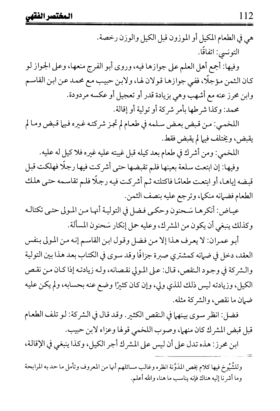 ابن محرز: هذه تدل على أن ليس على المشرك أجر الكيل، وكذا ينبغي في الإقالة،