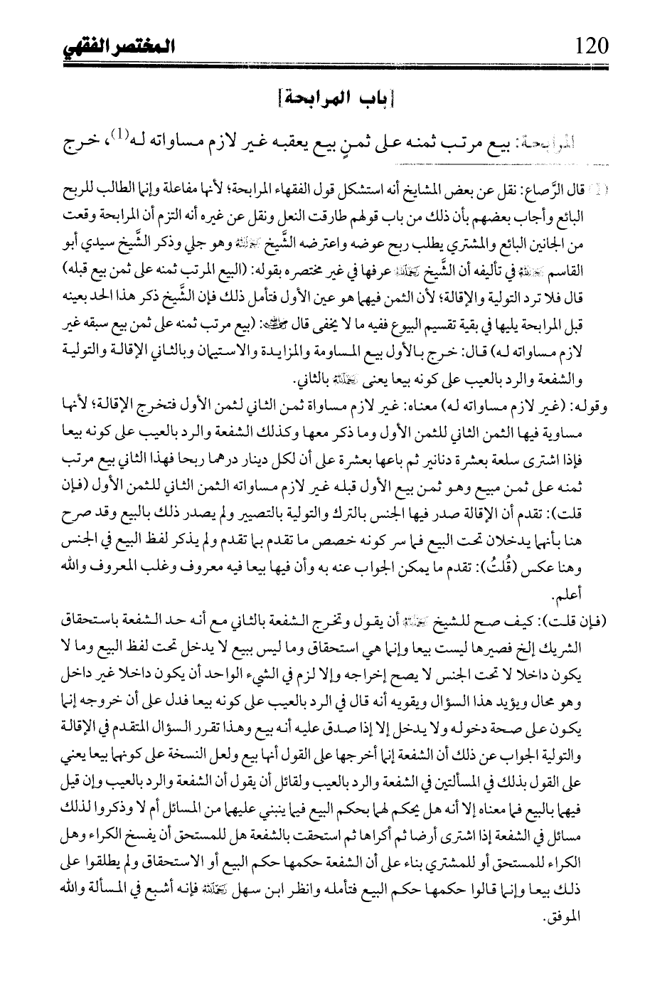 المرابحة: بيع مرتب ثمنه على بيع يعقبه غير لازم مساواته له، خرج