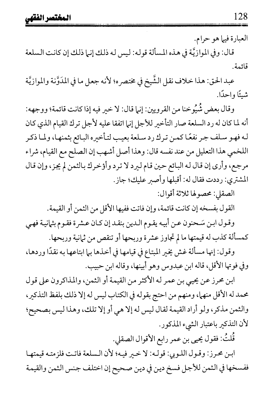 قلت: فقول يحيى بن عمر رابع الأقوال الصقلي.