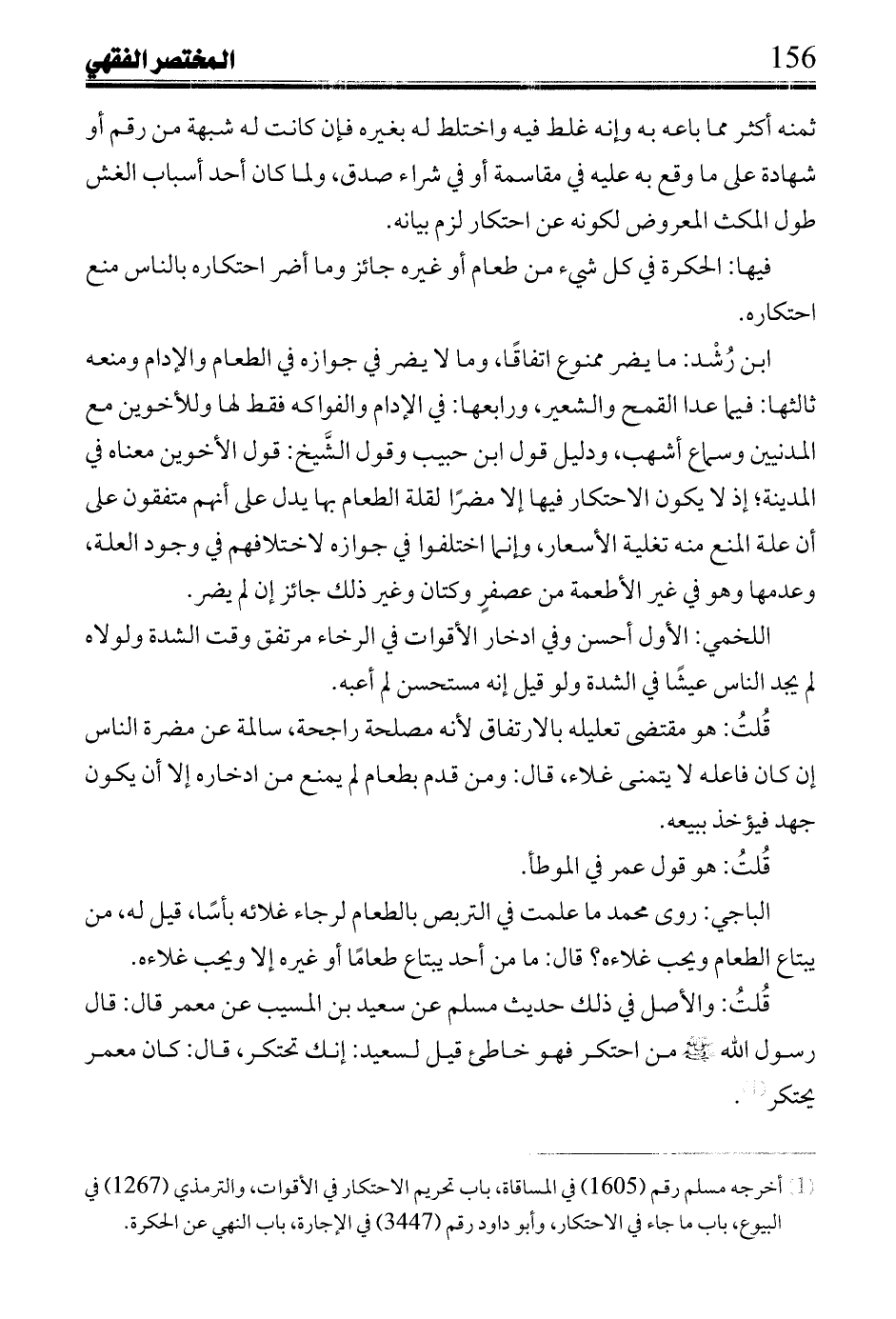 قُلتُ: والأصل في ذلك حديث مسلم عن سعيد بن المسيب عن معمر قال: قال رسول الله صلى الله عليه وسلم من احتكر فهو خاطئ قيل لسعيد: إنك تحتكر، قال: كان معمر يحتكر.