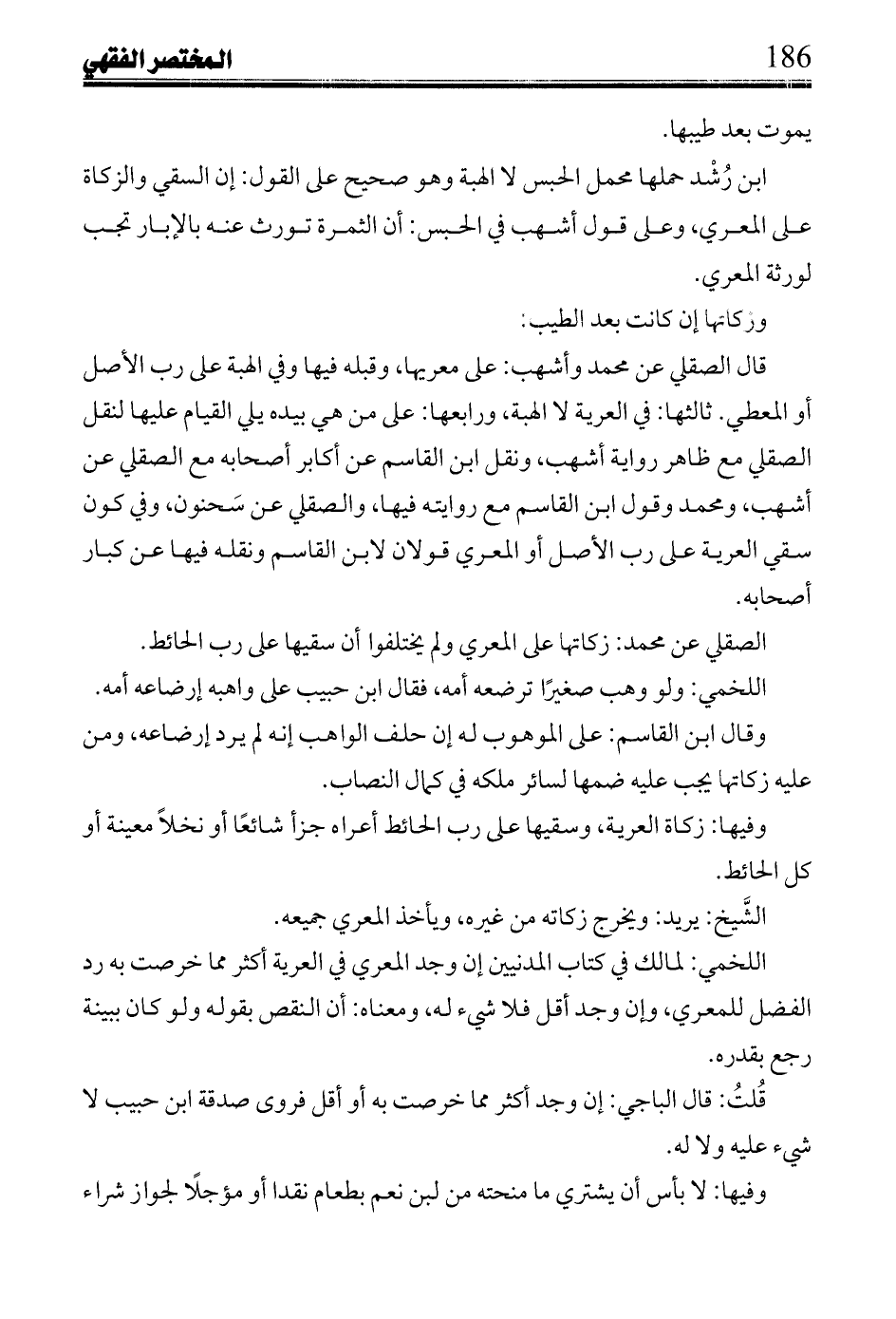 الصقلي عن محمد: زكاتها على المعري ولم يختلفوا أن سقيها على رب الحائط.