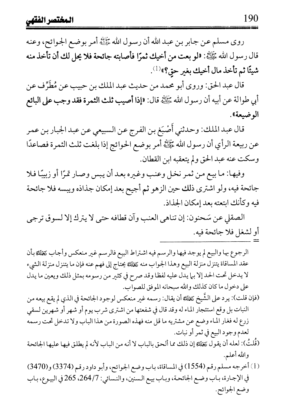 قال عبد الحق: وروى أبو محمد من حديث عبد الملك بن حبيب عن مُطَرَّف عن أبي طوالة عن أبيه أن رسول الله صلى الله عليه وسلم قال: (إذا أصيب ثلث الثمرة فقد وجب على البائع الوضيعة).