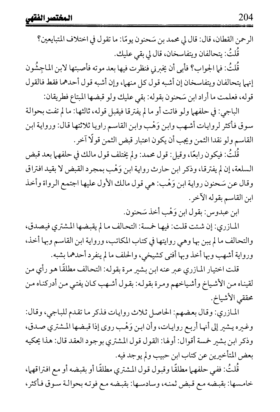 الرحمن القطان، قال: قال لي محمد بن سَحنون يومًا: ما تقول في اختلاف المتبايعين؟