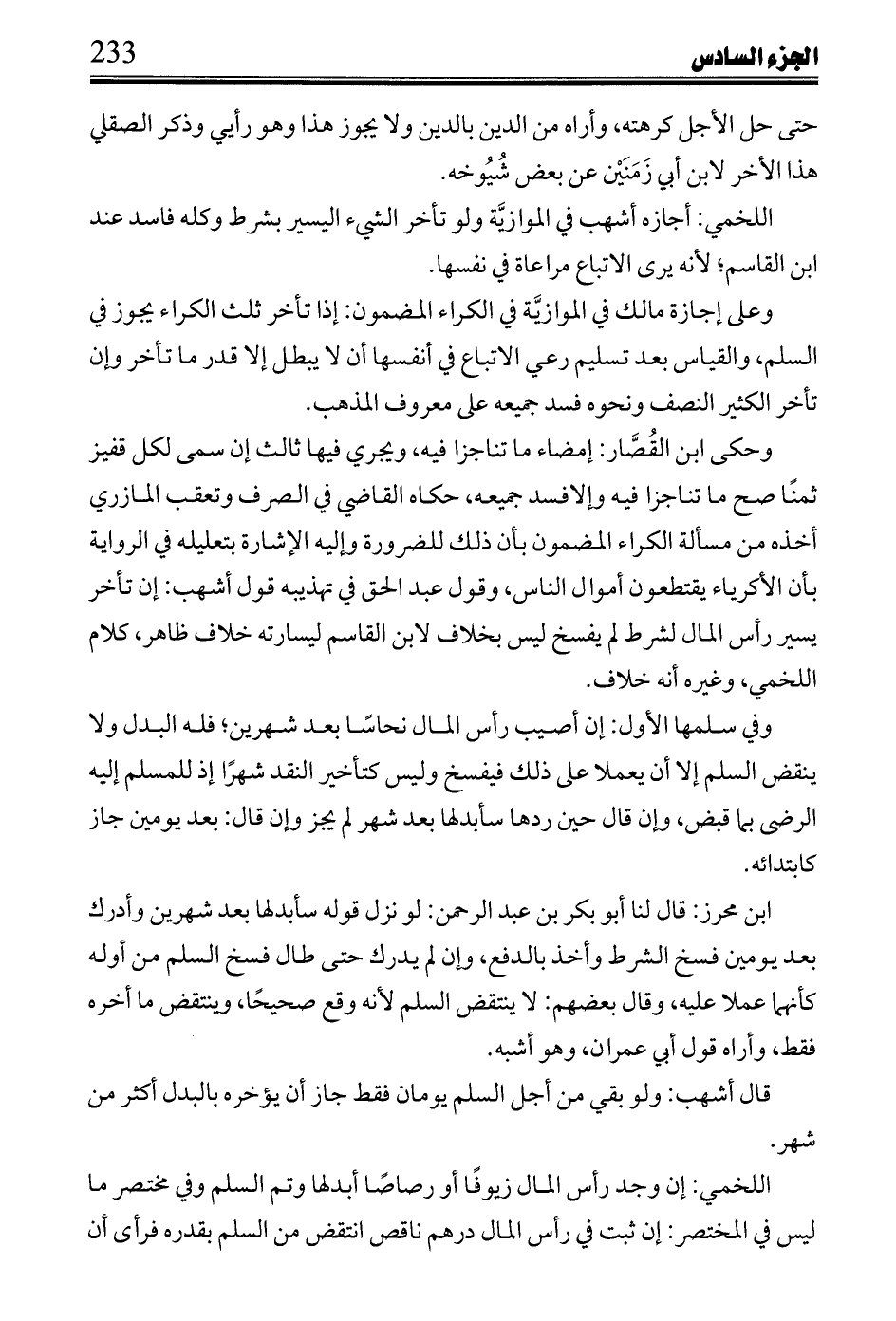 حتى حل الأجل كرهته، وأراه من الدين بالدين ولا يجوز هذا وهو رأيي وذكر الصقلي هذا الأخر لابن أبي أبي زمنين عن بعض شيوخه.