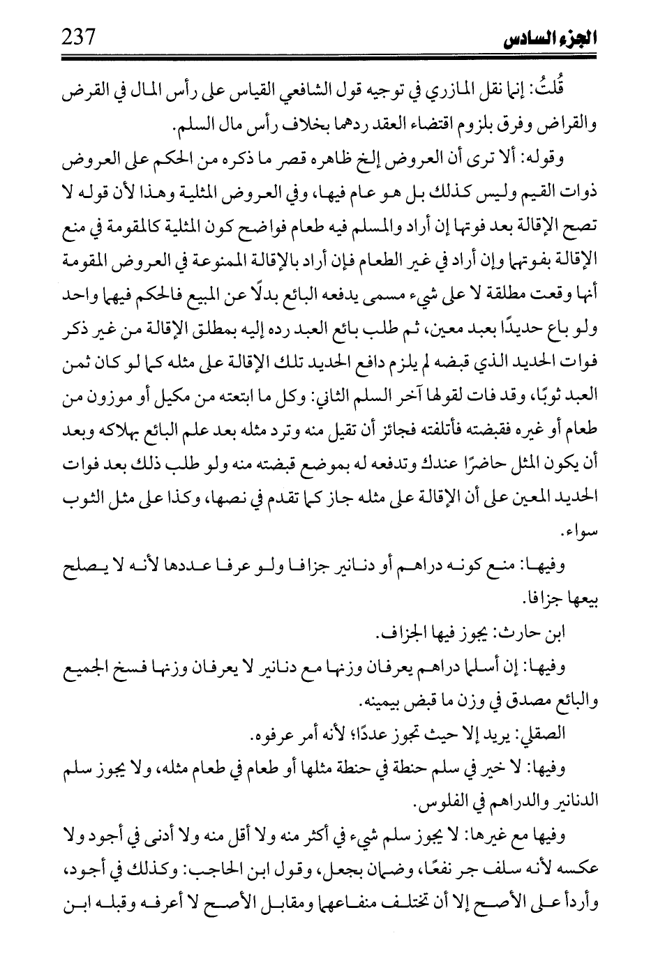 قُلتُ: إنما نقل المازري في توجيه قول الشافعي القياس على رأس المال في القرض والقراض وفرق بلزوم اقتضاء العقد ردهما بخلاف رأس مال السلم.