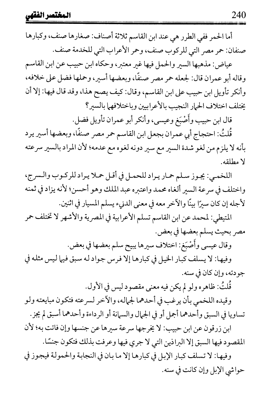 قُلتُ: احتجاج أبي عمران بجعل ابن القاسم حمر مصر صنفاً، وبعضها أسير يرد بأنه لا يلزم من لغو شدة السير مع سير دونه لغوه مع عدمه؛ لأن المراد بالسير سرعته لا مطلقه.