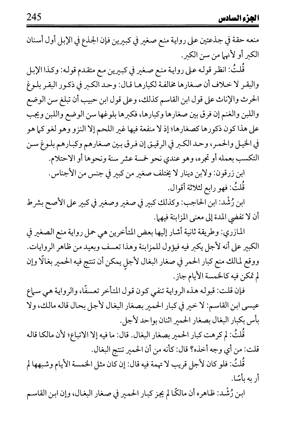 ابن زرقون: ولابن دينار لا يختلف صغير من كبير في جنس من الأجناس.