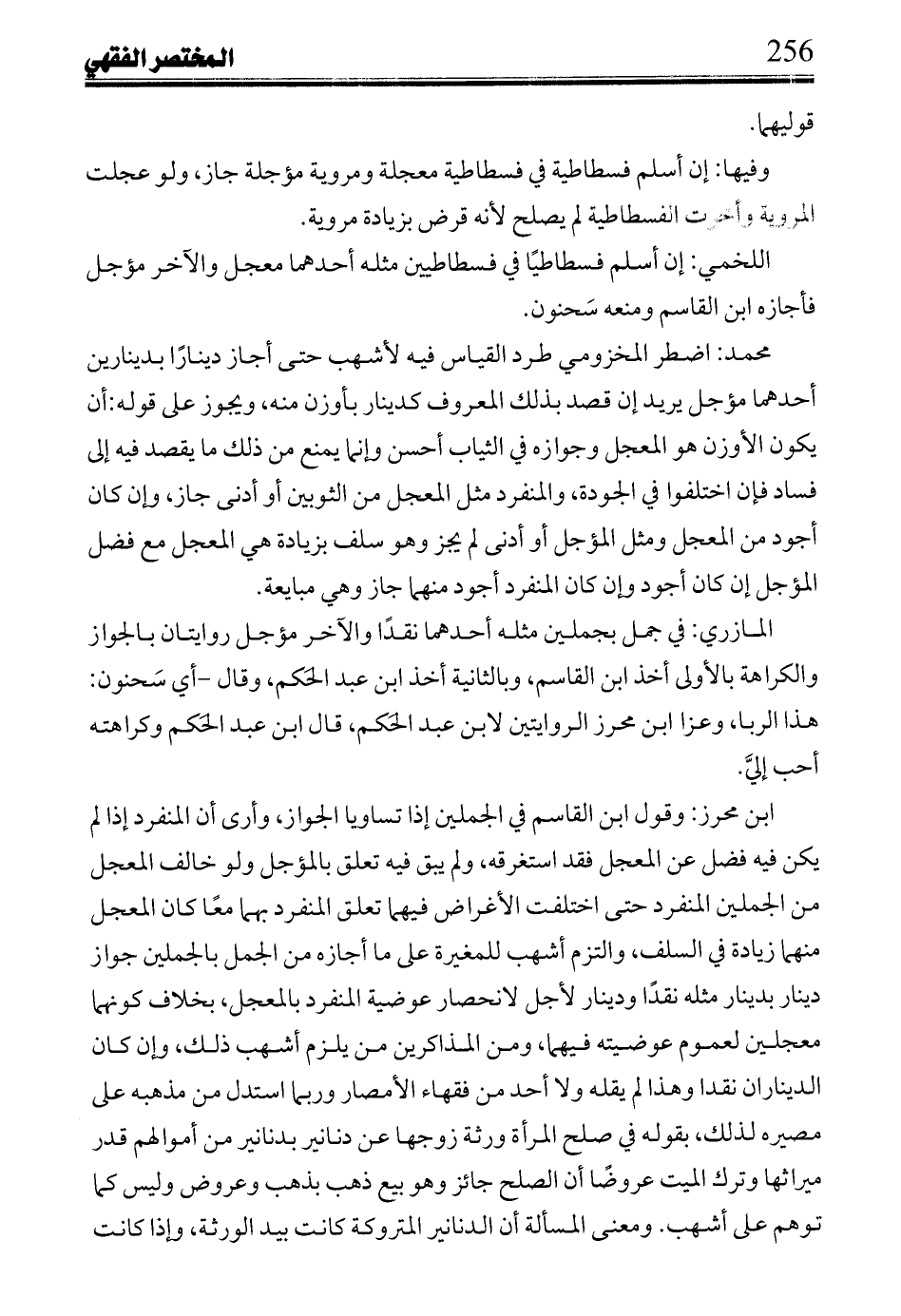 وفيها: إن أسلم فسطاطية في فسطاطية معجلة ومروية مؤجلة جاز، ولو عجلت المروية و**** الفسطاطية لم يصلح لأنه قرض بزيادة مروية.